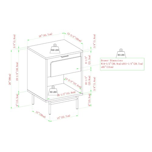 Be the first to review “18″ Contemporary 1-Drawer Nightstand” Cancel reply
