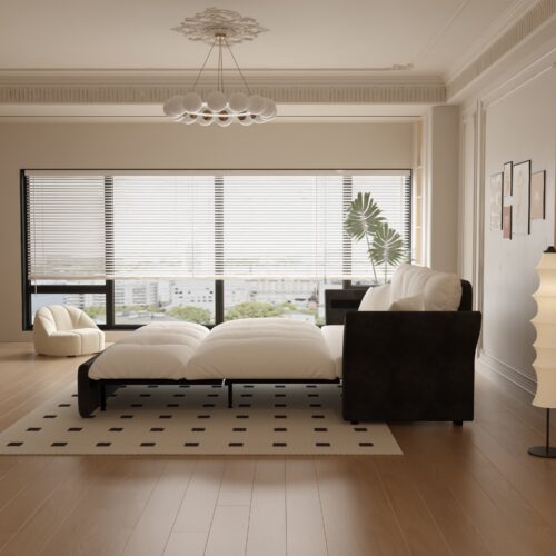Transform your love nest into a haven of comfort and versatility with our 3-in-1 convertible sleeper sofa bed. Imagine effortlessly switching from a cozy chaise sofa to a plush Queen-size bed, perfect for snuggling up with your loved one or hosting guests.
