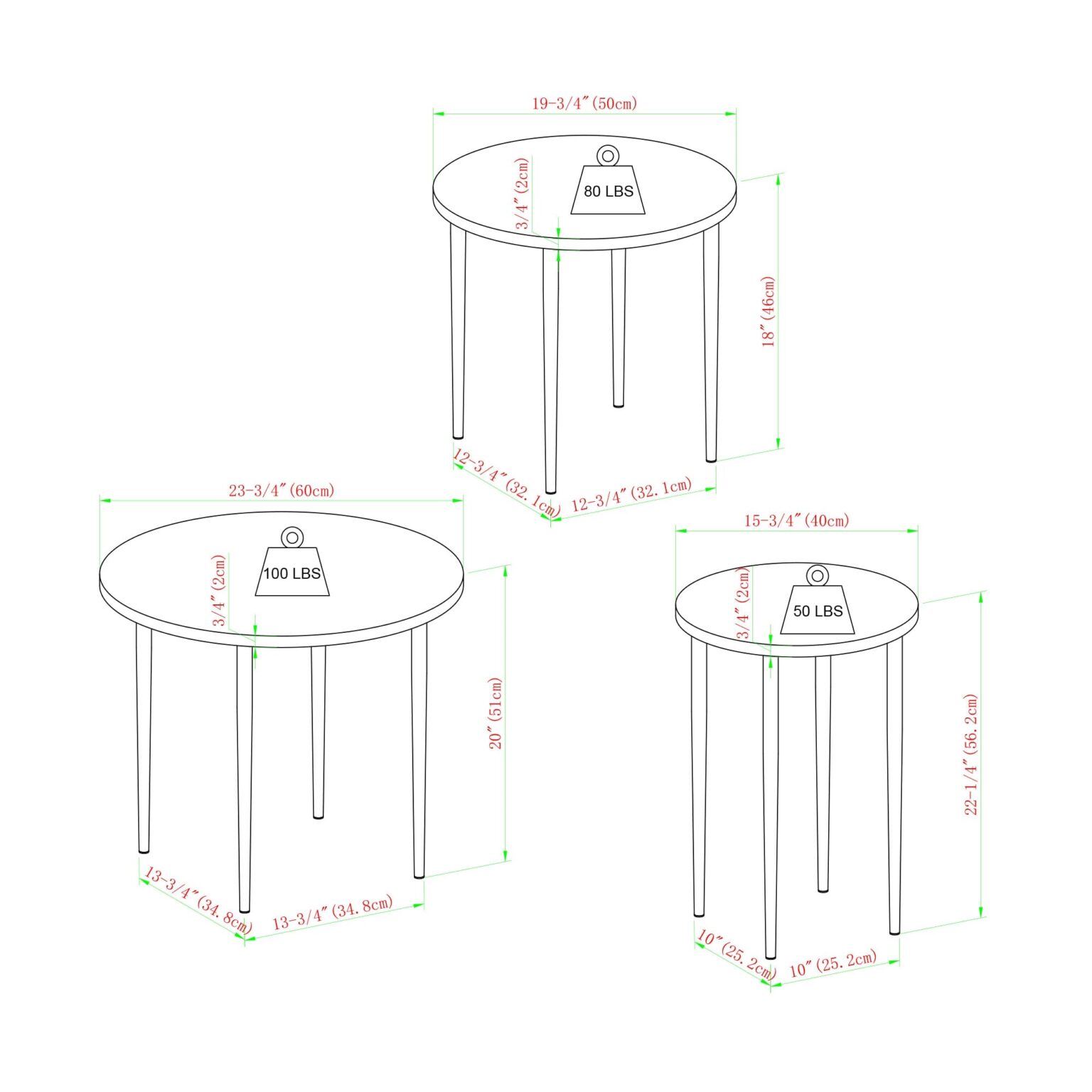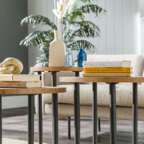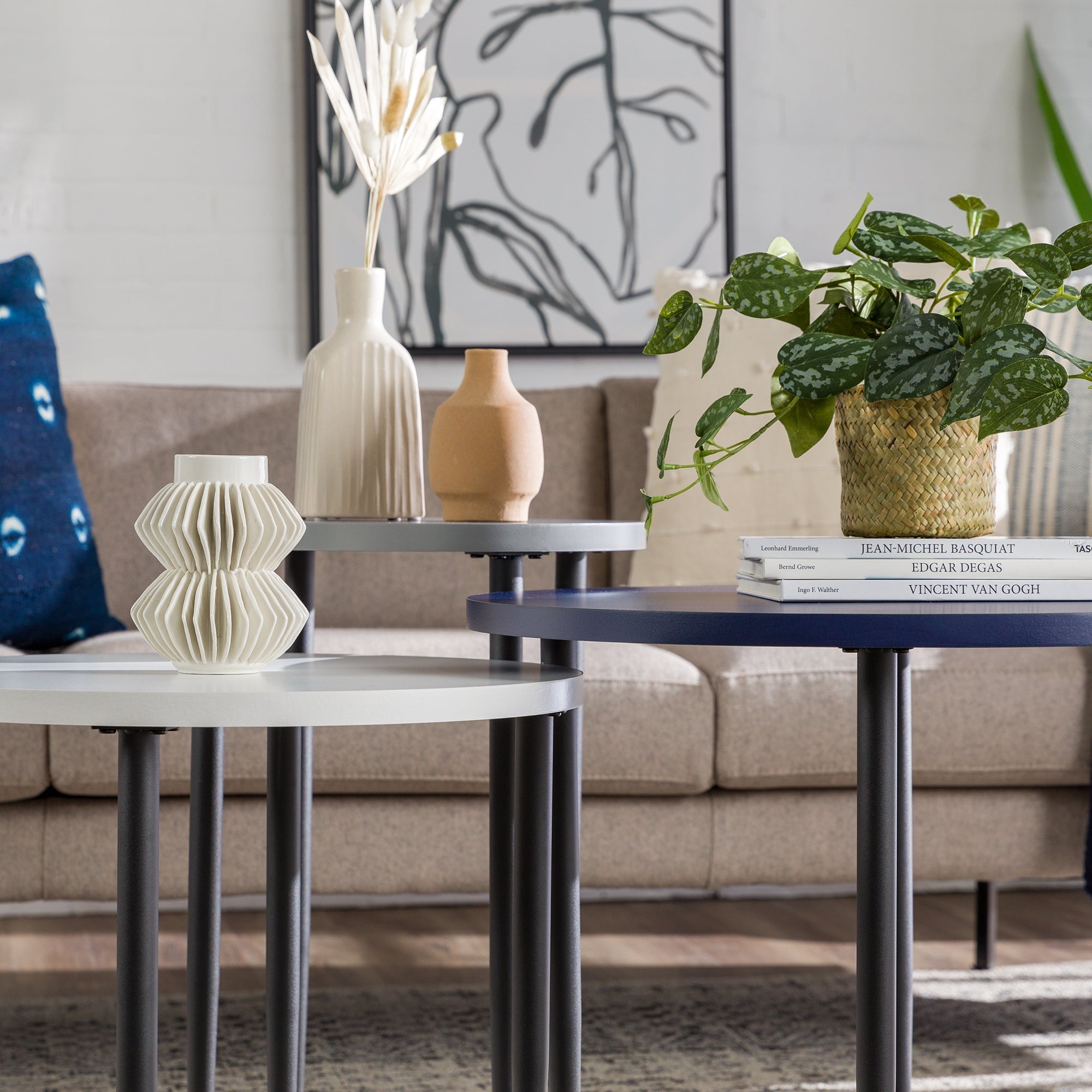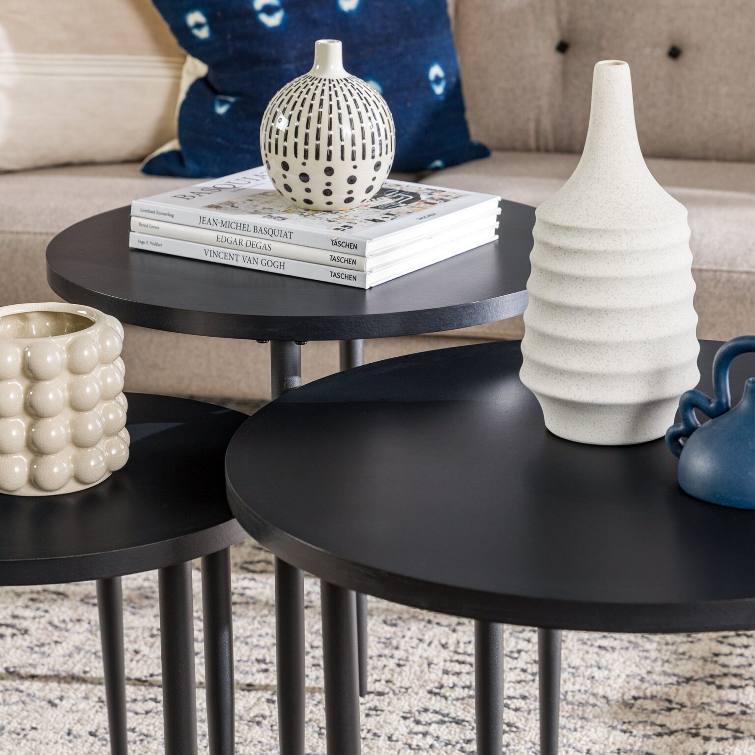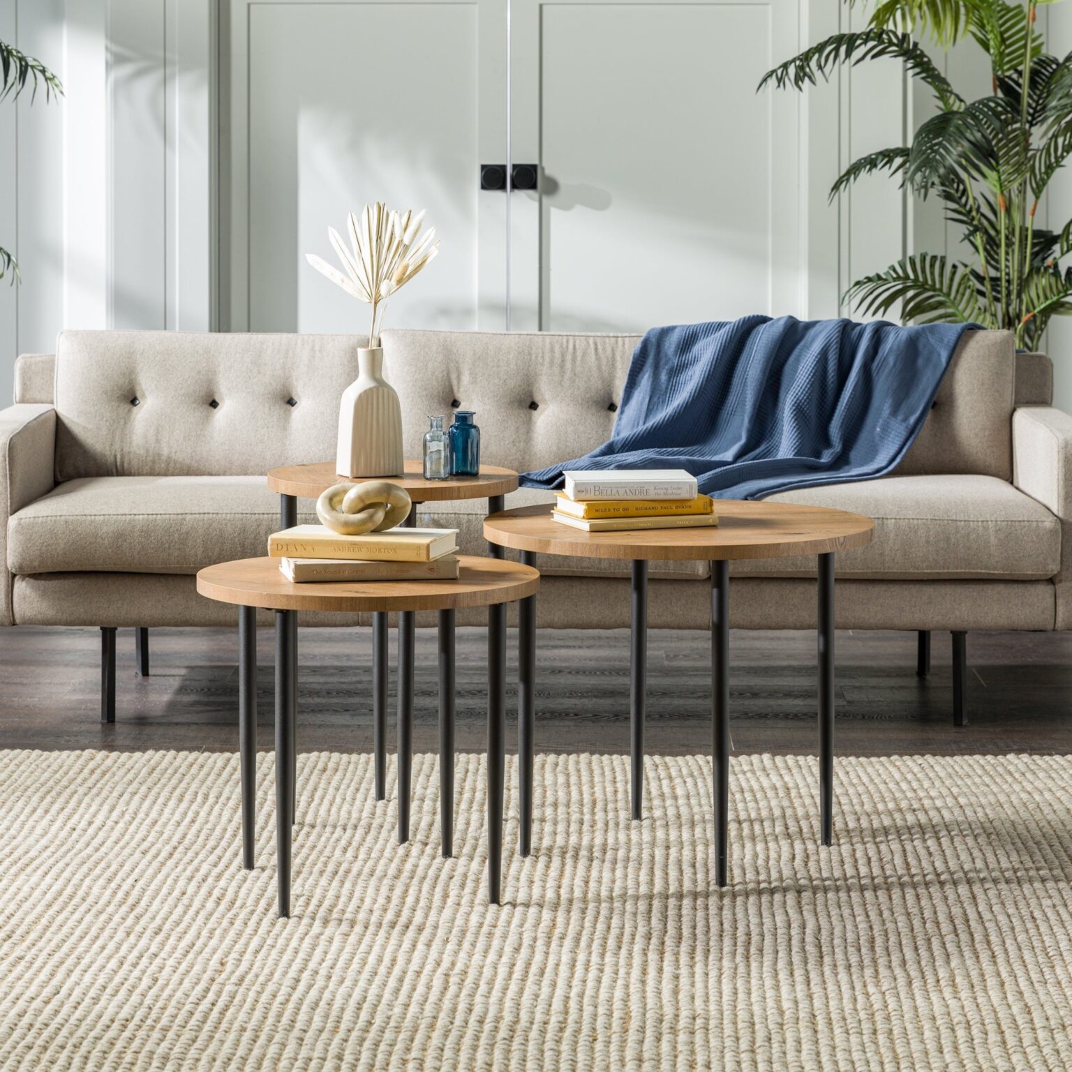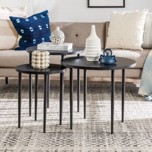 Modern Round Nesting Coffee Tables with Tapered Legs, Set of 3