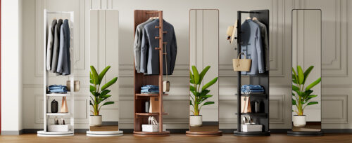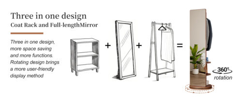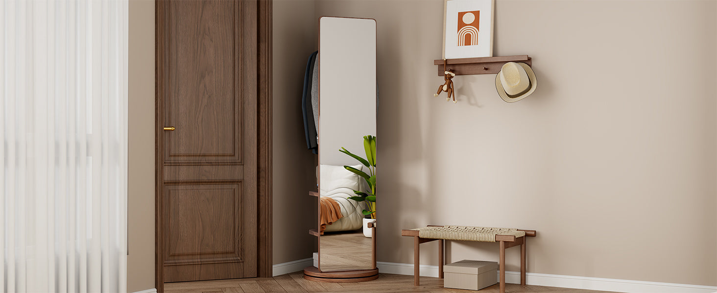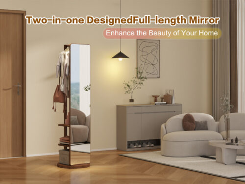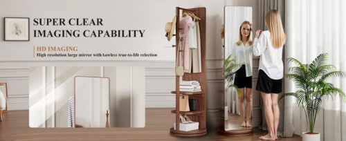 Walker Edison | 360° Rotating 66’x14′ Multifunctional Full Length Mirror with Storage