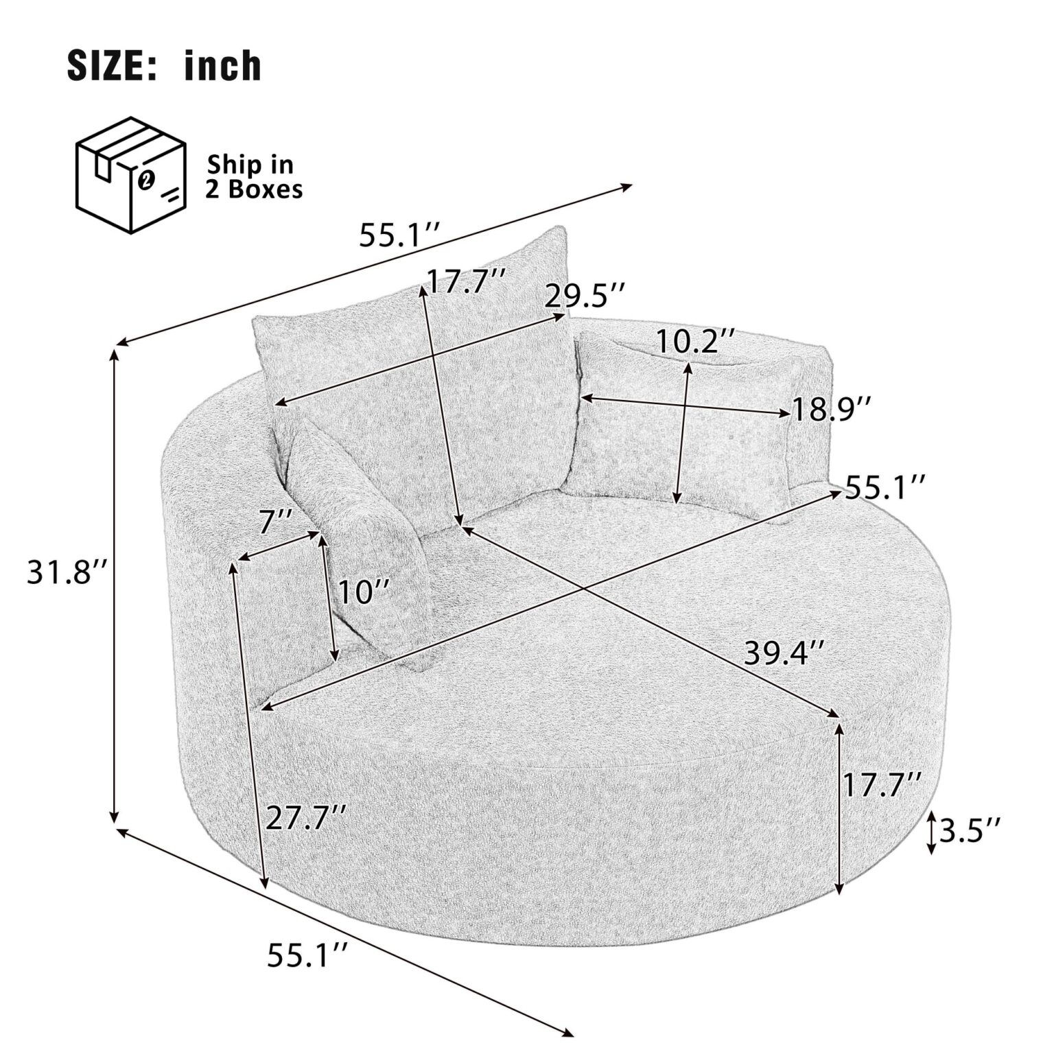 Overall Dimension | Overall: 55.1’D x 55.1’W x31.8’H |