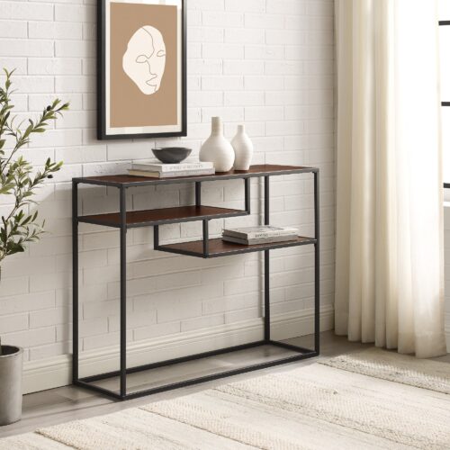 Be the first to review “Maya 42″ Metal and Wood Tiered Shelf Entry Table” Cancel reply