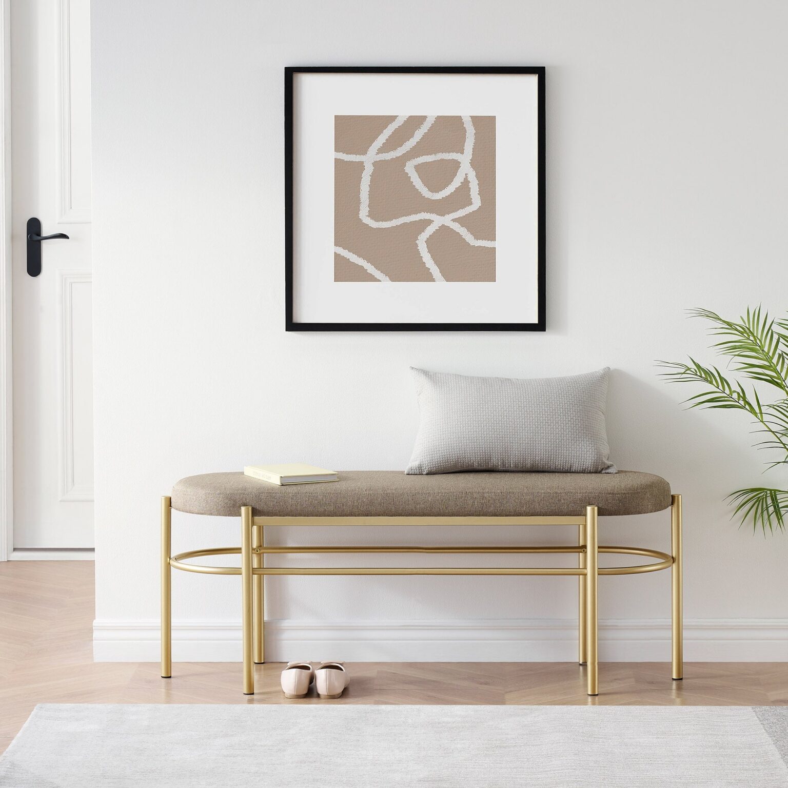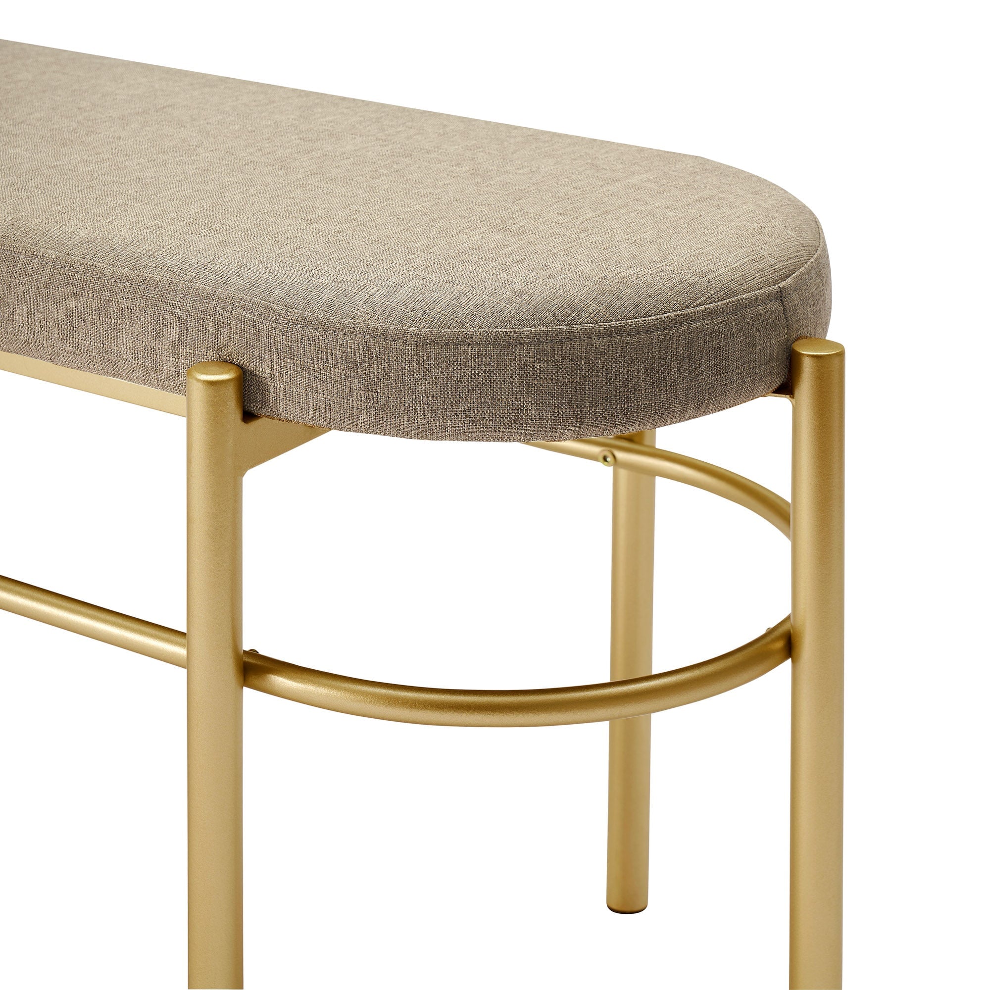 With a contemporary silhouette and painted-gold frame, this bench is as decorative as it is functional. Whether it’s sitting at the end of your bed or at your entryway, its 300-pound capacity can serve as a seat or a perch for your decorative pillows. A quick, easy assembly and lightweight frame makes this the perfect piece for any place, whether space is sprawling or limited. The upholstered, cushioned top beckons you to sit, whether you need a cozy spot to relax and read or simply a quick pit stop where you can lace up your shoes before you head out the door.