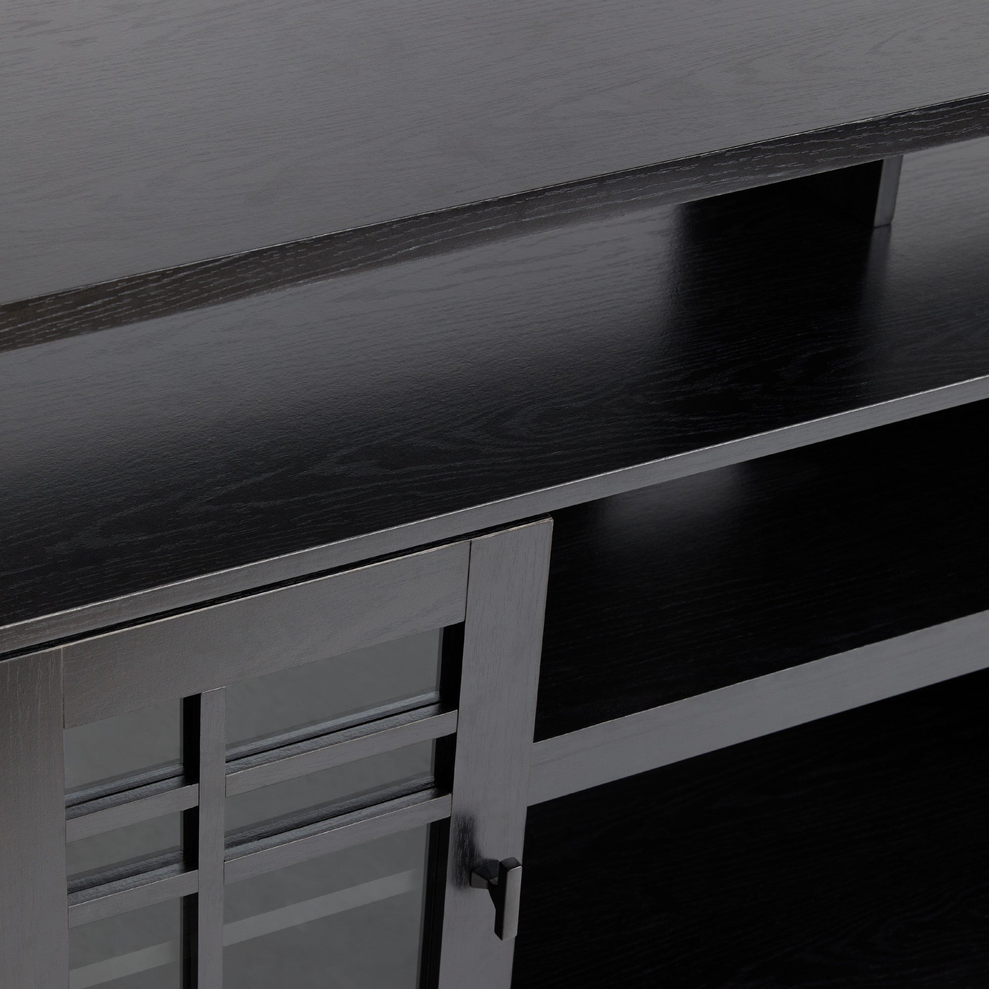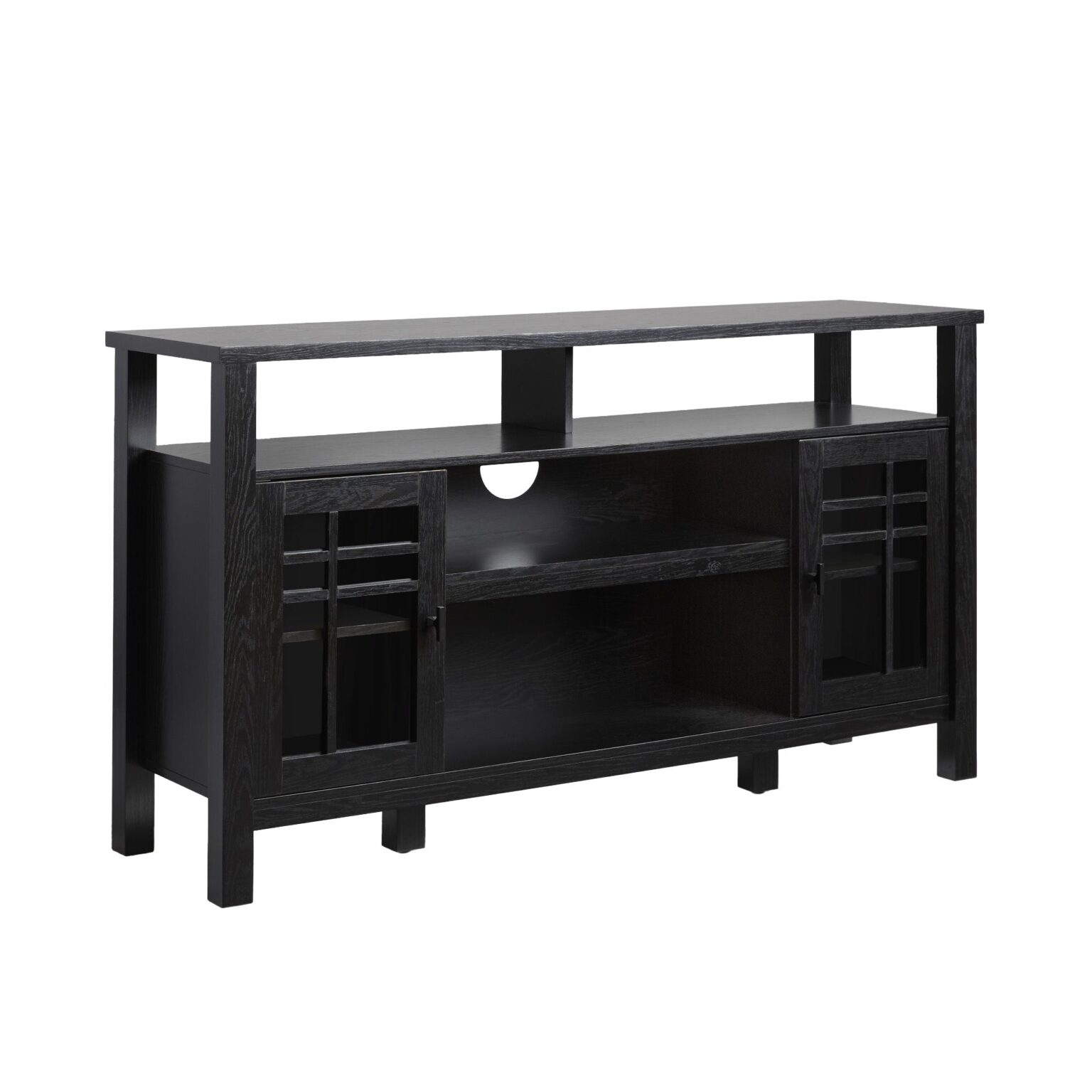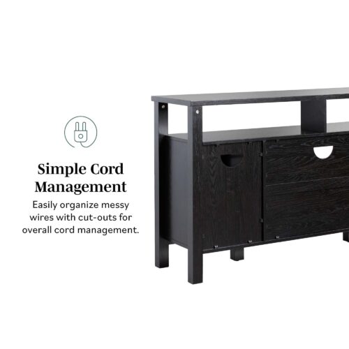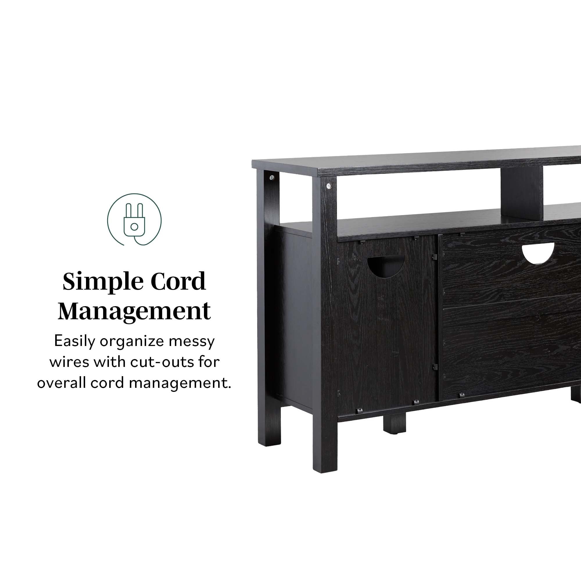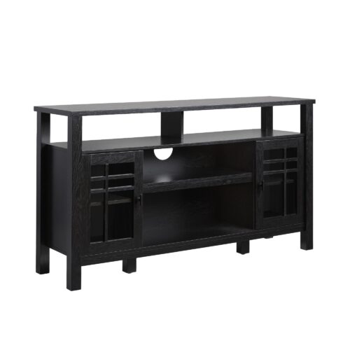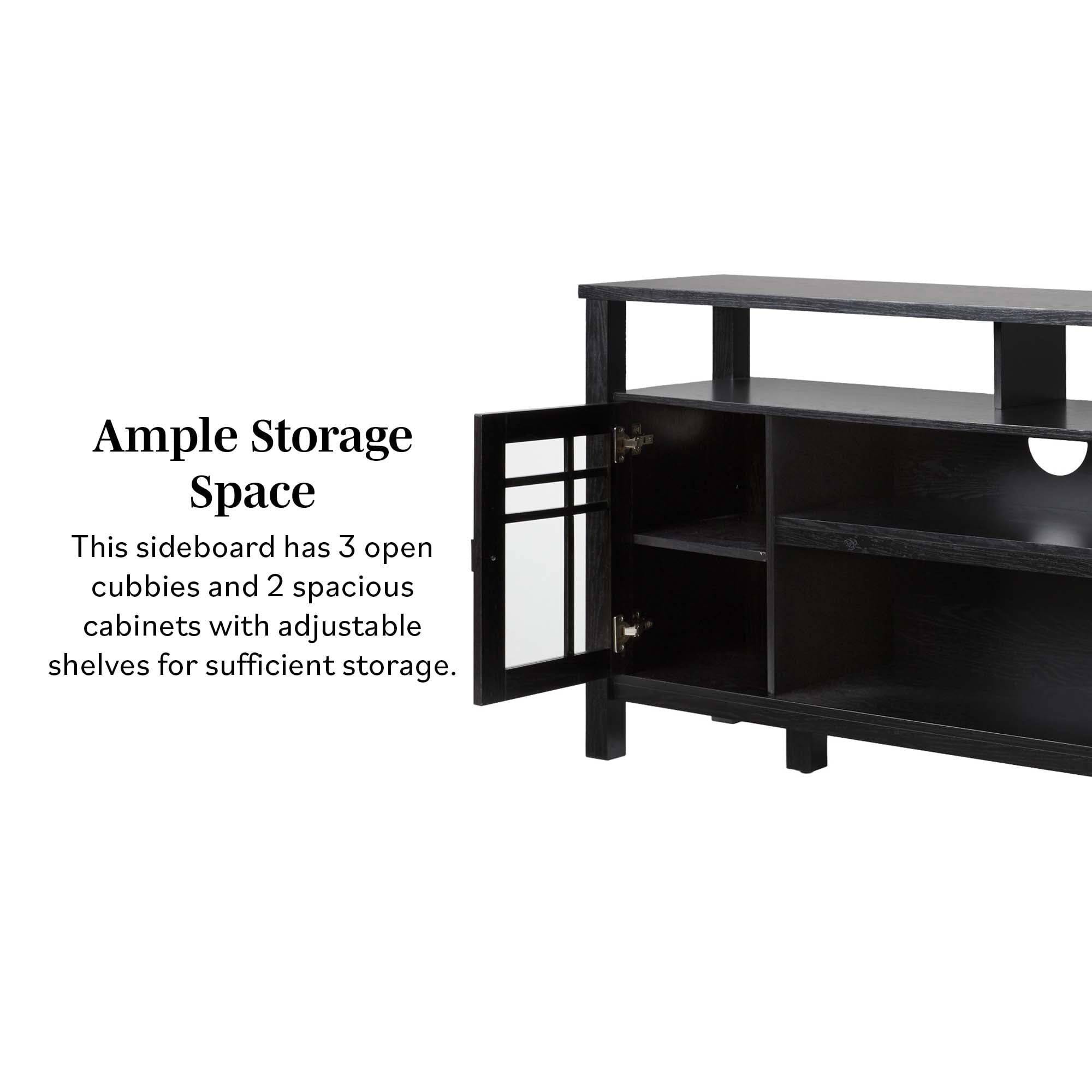 Update your home with this two-door buffet sideboard and tv stand. The classic style fits most room styles, and the two windowpane glass doors are a beautiful touch that adds interest. You will always have a place for your books, decor, dishes, and more with this versatile storage solution. Use the cord management cutout to discretely stow away cables out of sight, and store bulkier items on the spacious open shelves. This sideboard is made from warp-resistant MDF and quality laminate, ensuring lasting durability for everyday use.