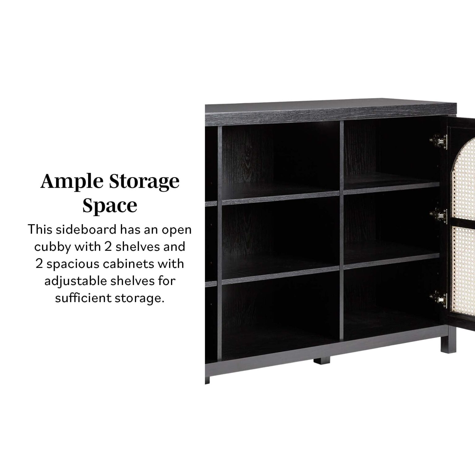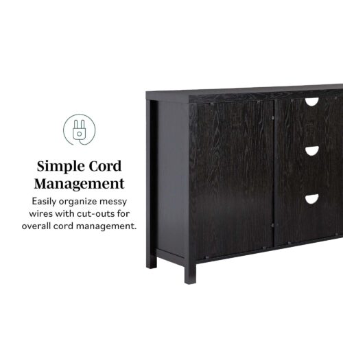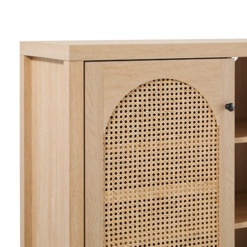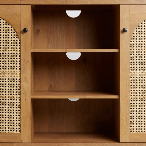 Add a bit of boho style to your home with this enviable two-door buffet sideboard. The rattan panels make a statement and give your home that transitional, modern style you’ve seen all over Pinterest. Add this sideboard to your family room, dining room, or living room as a tv stand. No matter where it goes, it adds warmth, texture, and stress-free storage. Just close the doors to hide away dishes, books, toys, and games. Plus, the cutout back discreetly hides media cables, so you don’t have to give those jumbled cords another thought. Made from warp-resistant MDF and durable laminate, this sideboard is ready for your everyday life.