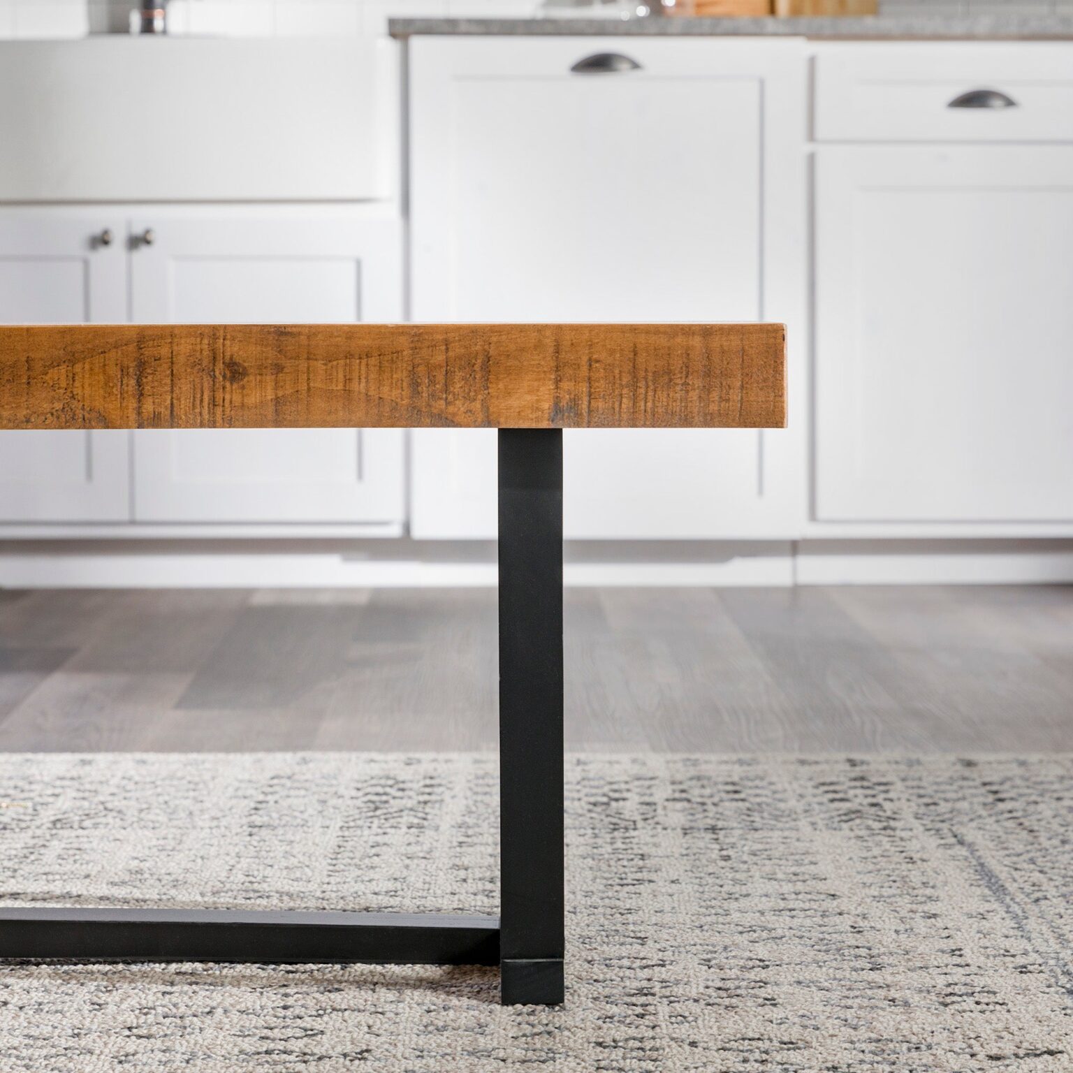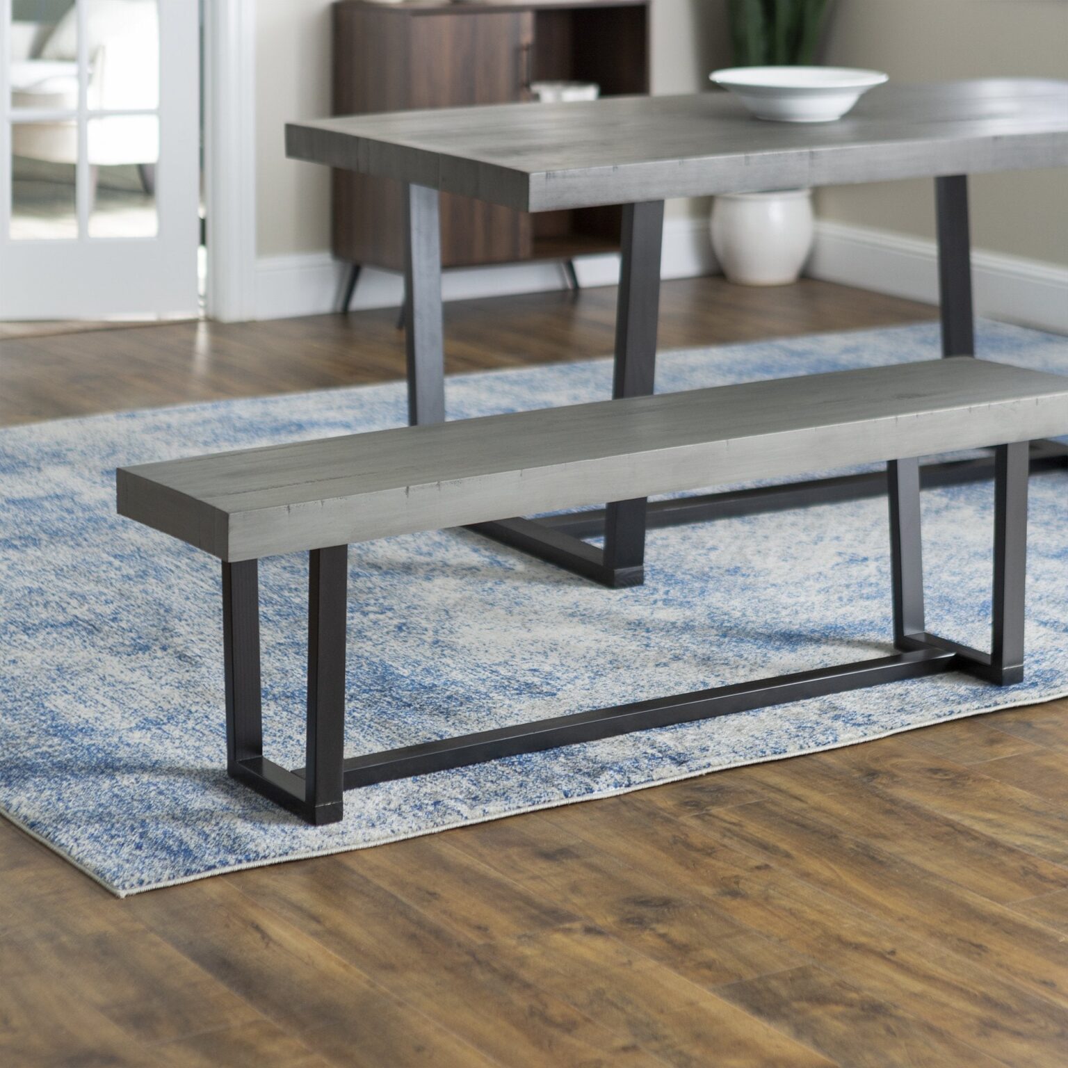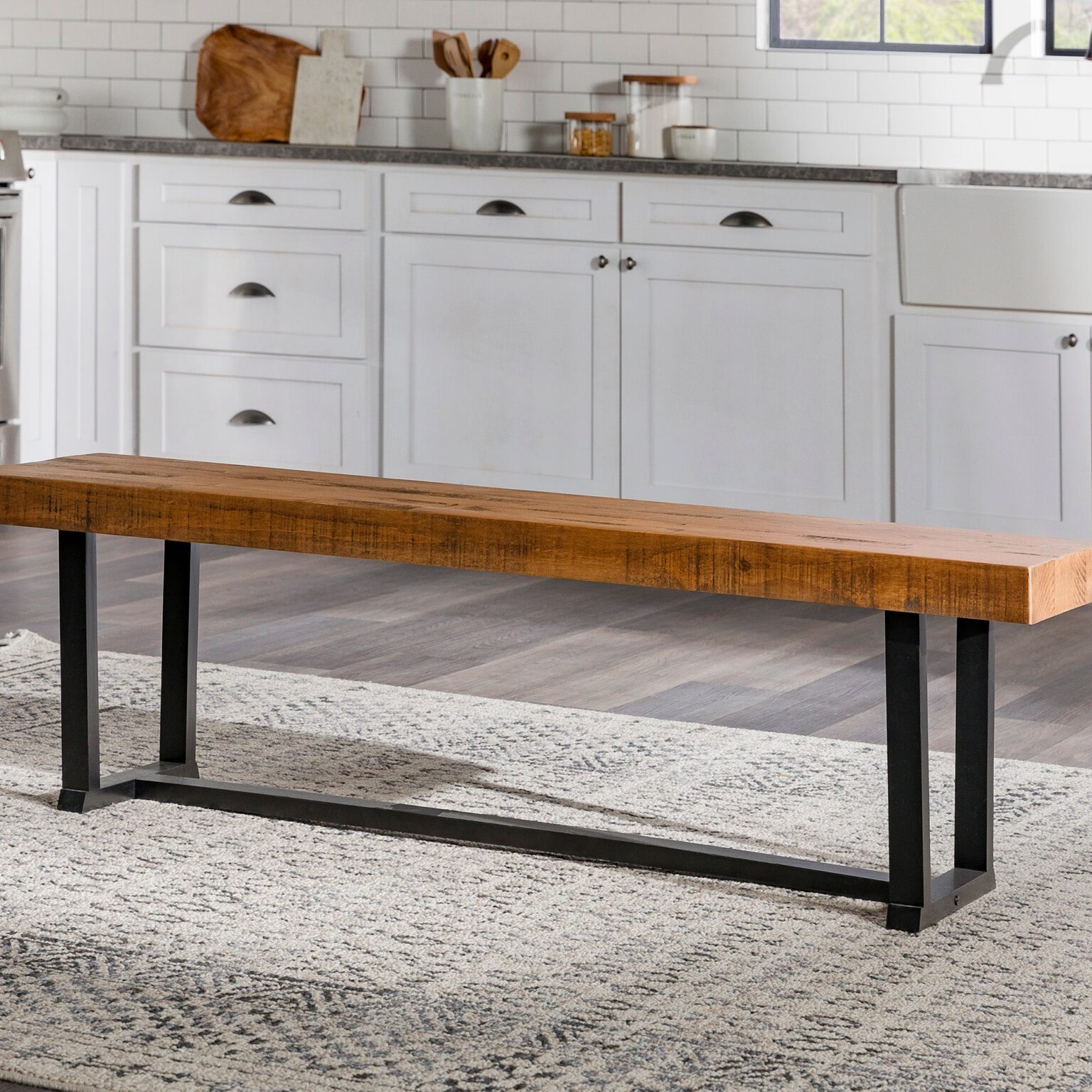 This rustic, solid wood dining bench provides just enough extra room for the evening social you’ve been dying to host. The high-quality blend of powder-coated steel and wood provide a trusty, durable frame. The bench’s distressed top detailing and two-tone design offer farmhouse style to elevate your country or industrial dining room or entryway. Pair it with your favorite dining table for the perfect entertaining space to host game nights and family dinners.