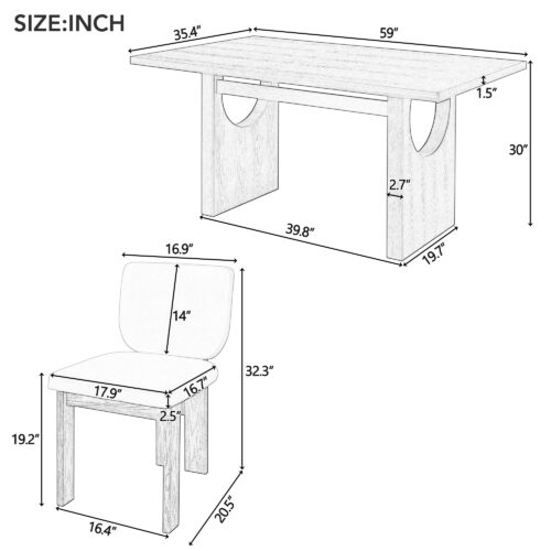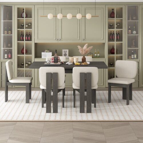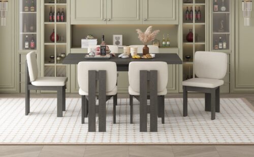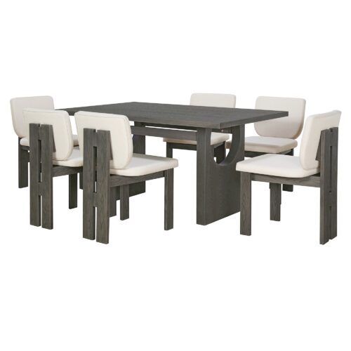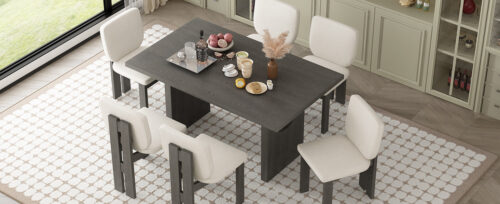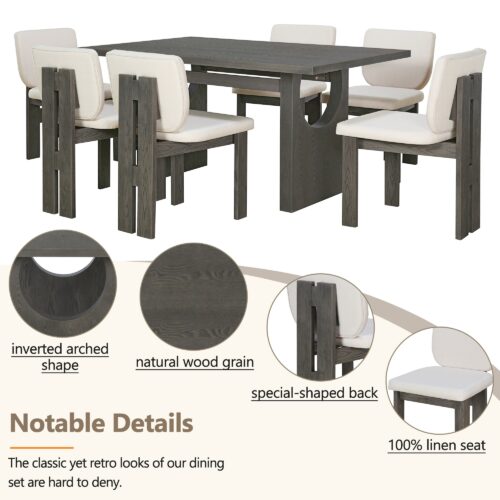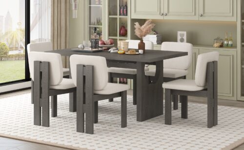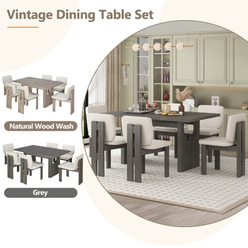 This retro-style dining table set comes with a simply striking table and six beautifully crafted chairs, setting the scene for vintage or farmhouse living. Its elegant design, high-quality construction, and versatile seating options make it a perfect choice for you if you appreciate both the beauty and practicality of the furniture. It’s available in two colors, Natural Wood Wash and Grey, no matter what color you choose, it will perfectly complement your home decor.