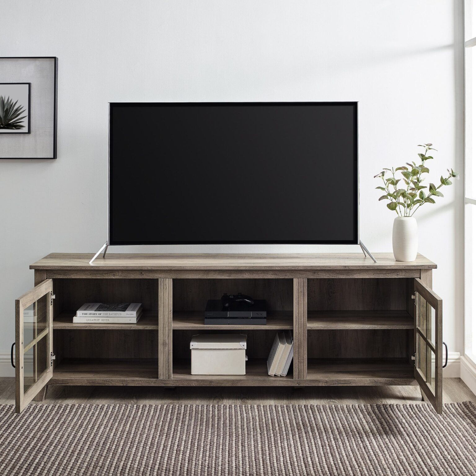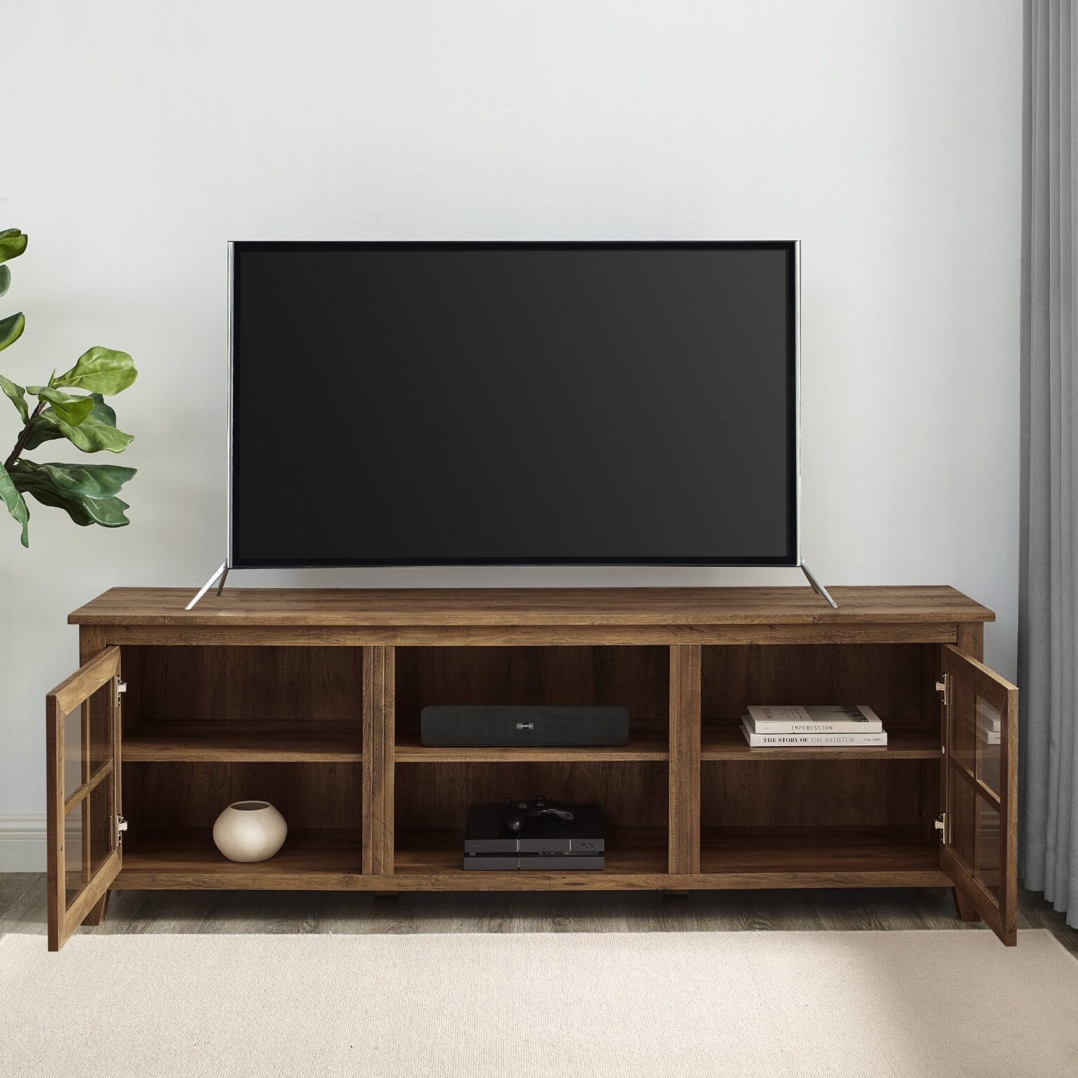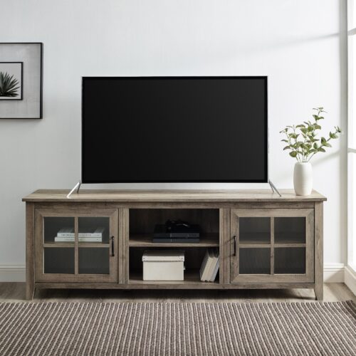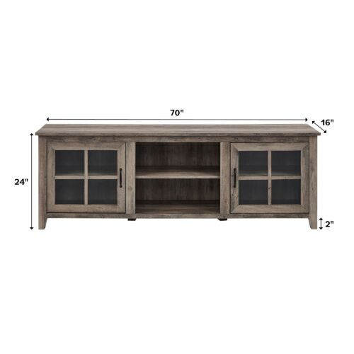 Farmhouse 70″ Simple Window Pane 2 Door Wood TV Stand