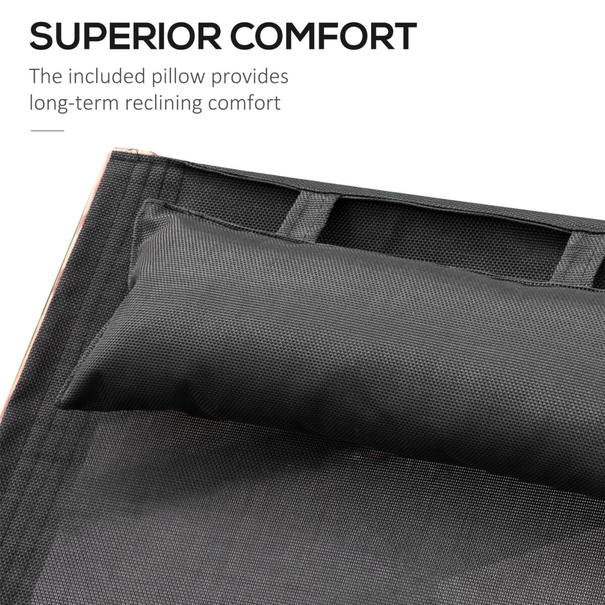 Relax in style with our modern, affordable outdoor mesh lounger, designed for ultimate comfort and durability. Featuring breathable sling mesh fabric on a weather-resistant wood frame, this lounger is perfect for poolside lounging or reclining in the shade. The cotton-padded pillow headrest and sturdy armrests add extra convenience, while the pine frame supports up to 265 lbs. Built to last, this lounger’s oil-painted wood surface and weather-resistant materials make it a stylish and reliable choice for any outdoor space.
