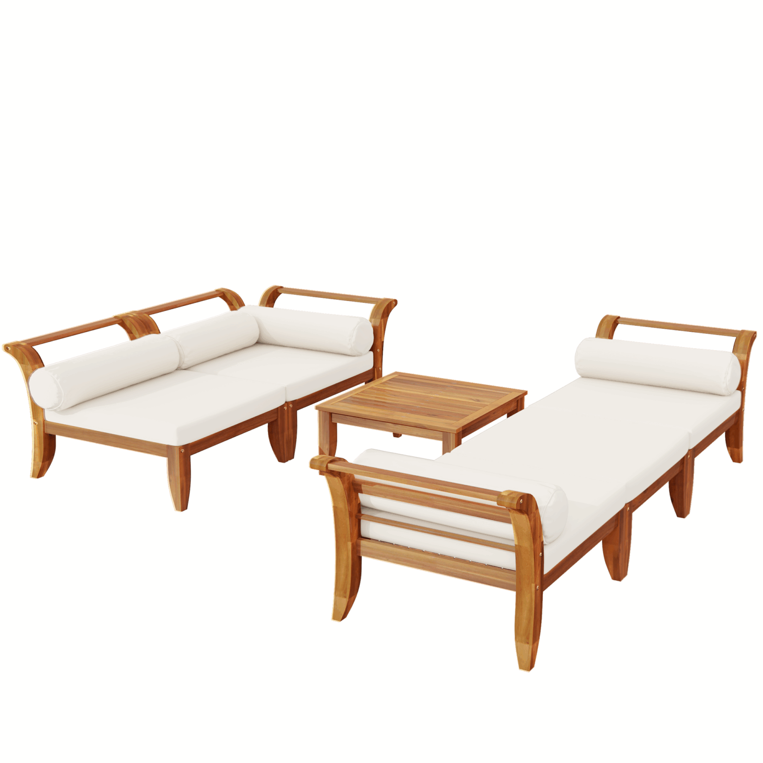 Imagine lounging in comfort, surrounded by the beauty of nature, with the support of sturdy Acacia Wood construction and plush cushions. This set is crafted to withstand the elements and provide years of relaxation and joy.