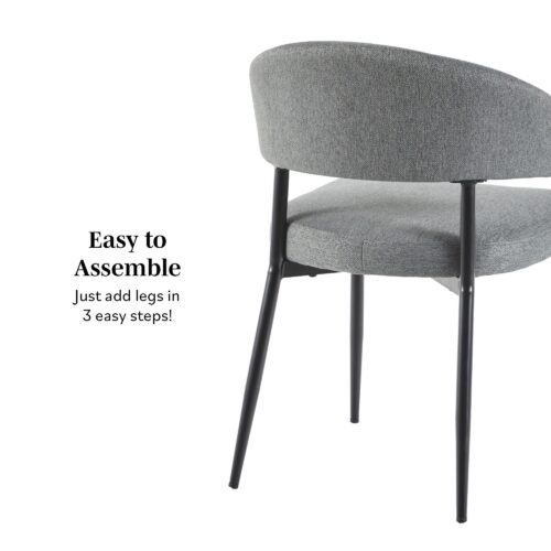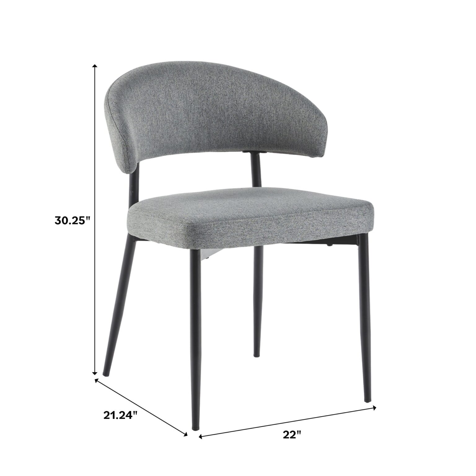 Kick off your shoes, sit back and relax! This set of two curved back upholstered dining chairs makes every occasion a bit more comfortable and stylish. Whether you’re enjoying a meal with your family, catching up with friends, eating a midday snack, or even working from home, you’ll love the comfort and aesthetic design of this modern piece. The rounded back isn’t just visually eye-catching — it’s also ergonomically designed to maximize your comfort while sitting. The tapered legs play up the contrast of the curved back and wide seat, and the overall modern design is the ideal pairing for a transitional home.