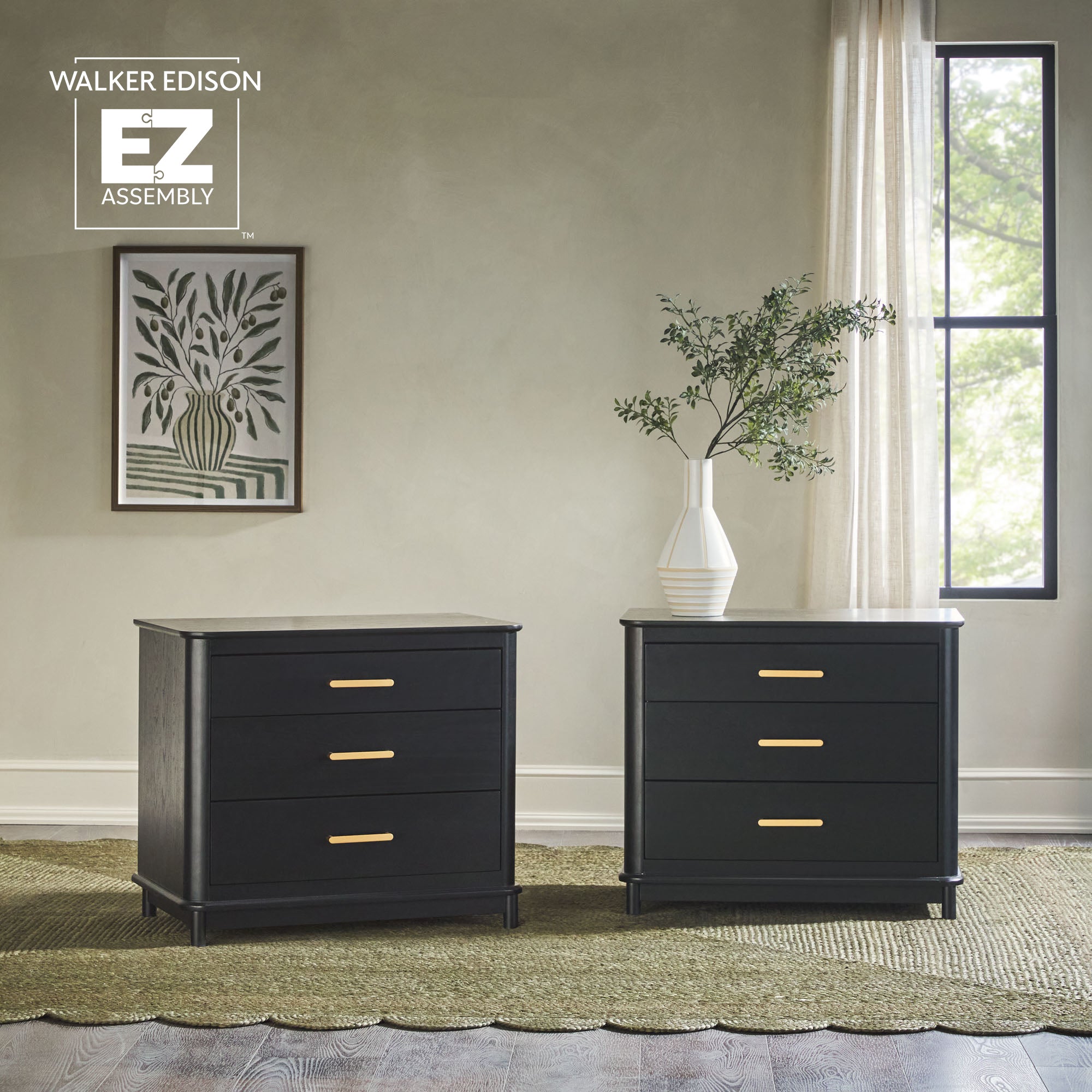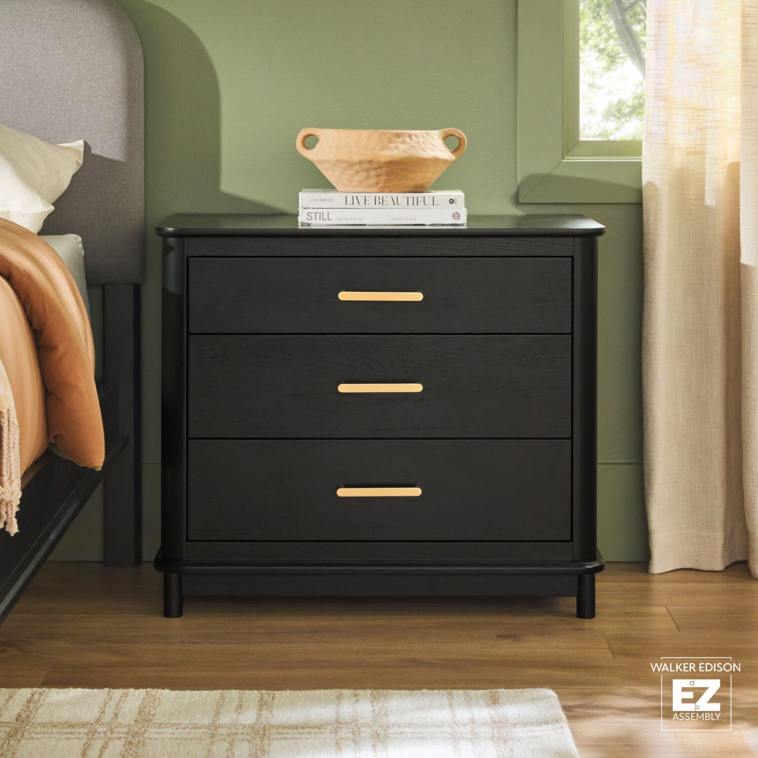 Annette Contemporary 3-Drawer Wood Nightstand