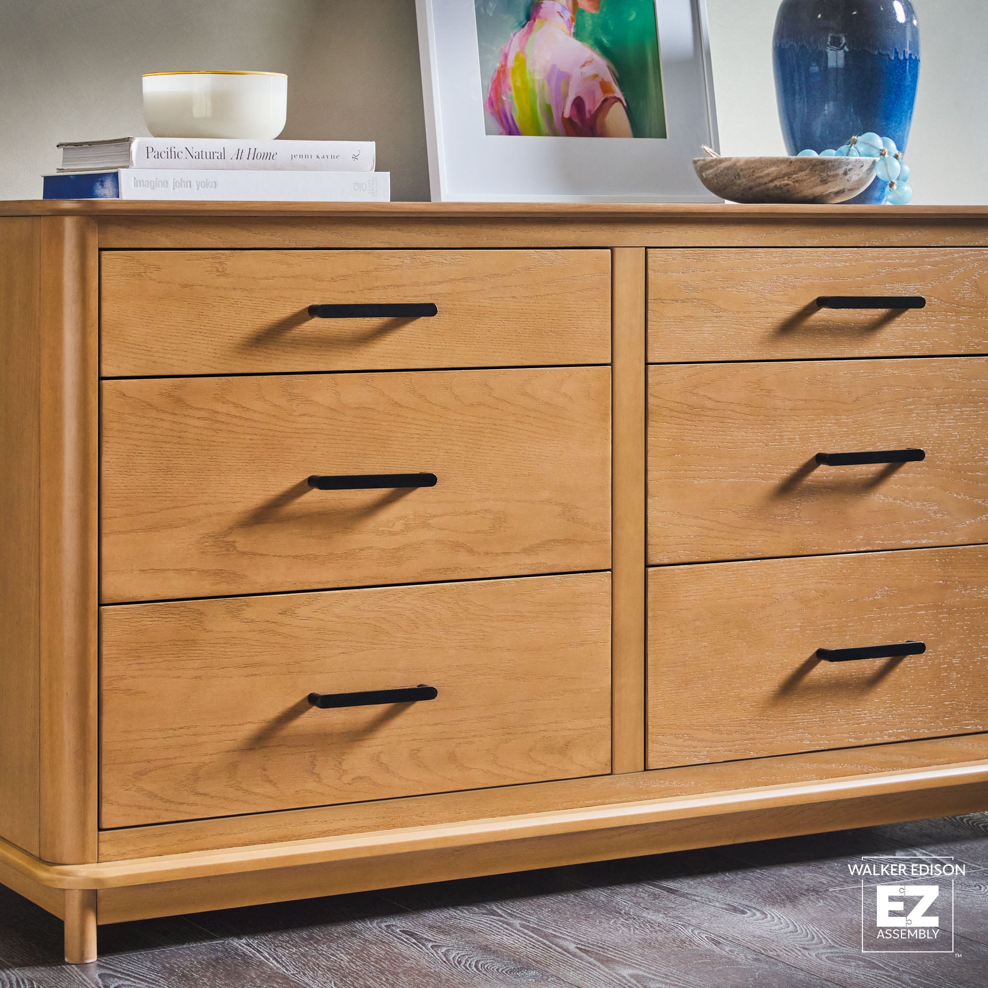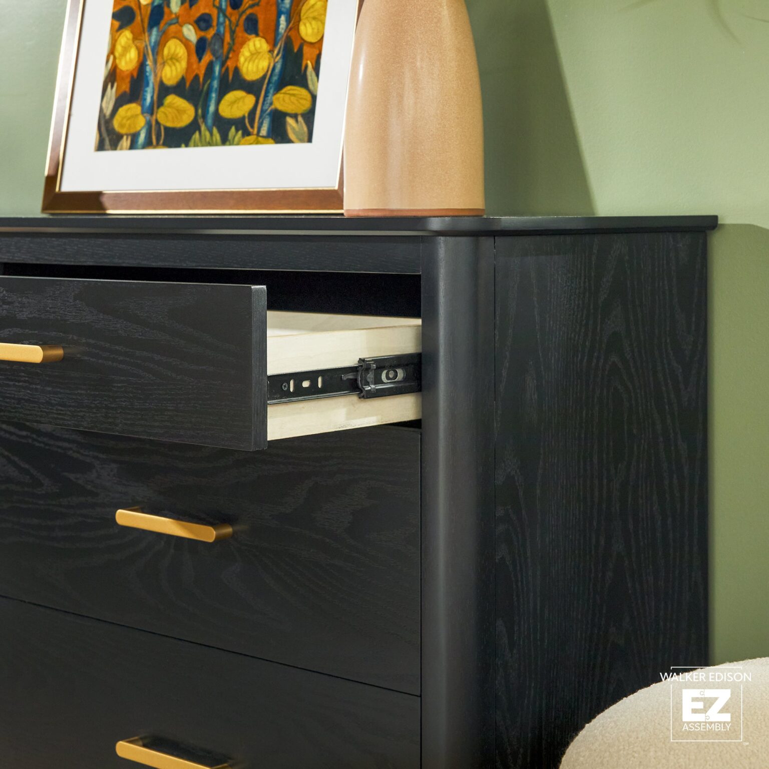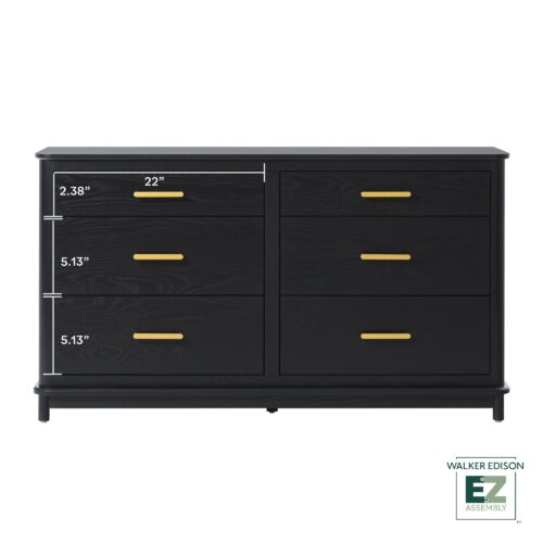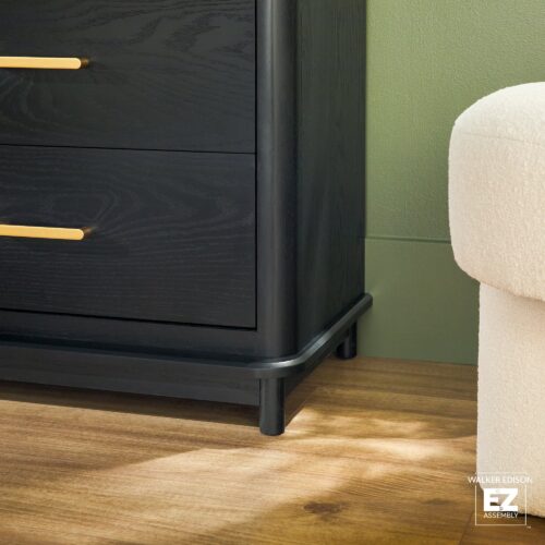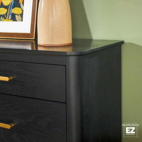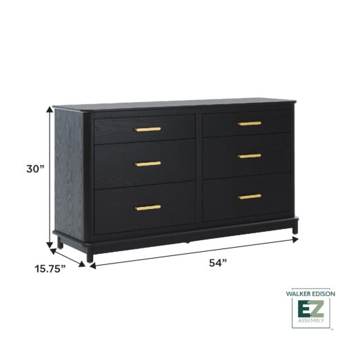 Made with our newest Walker Edison EZ Assembly™ drawers innovation. Easy to assemble, a sleek pairs-with-anything design, and high-quality construction at a budget-friendly price. Have we thought of everything with this contemporary, 6-drawer dresser? Why yes, yes we have. With subtly curved edges on the front of the case and a decorative lip detail, this dresser is a sophisticated, elevated choice for any room. Metal roller glides offer a luxurious feel when you open and close each spacious drawer, and a combination of solid and engineered wood offers durability made for everyday living. Another perk not to miss? Ultra-easy drawer assembly technology means you can Say Goodbye to Frustration and set up this dresser in a snap, no stress required.