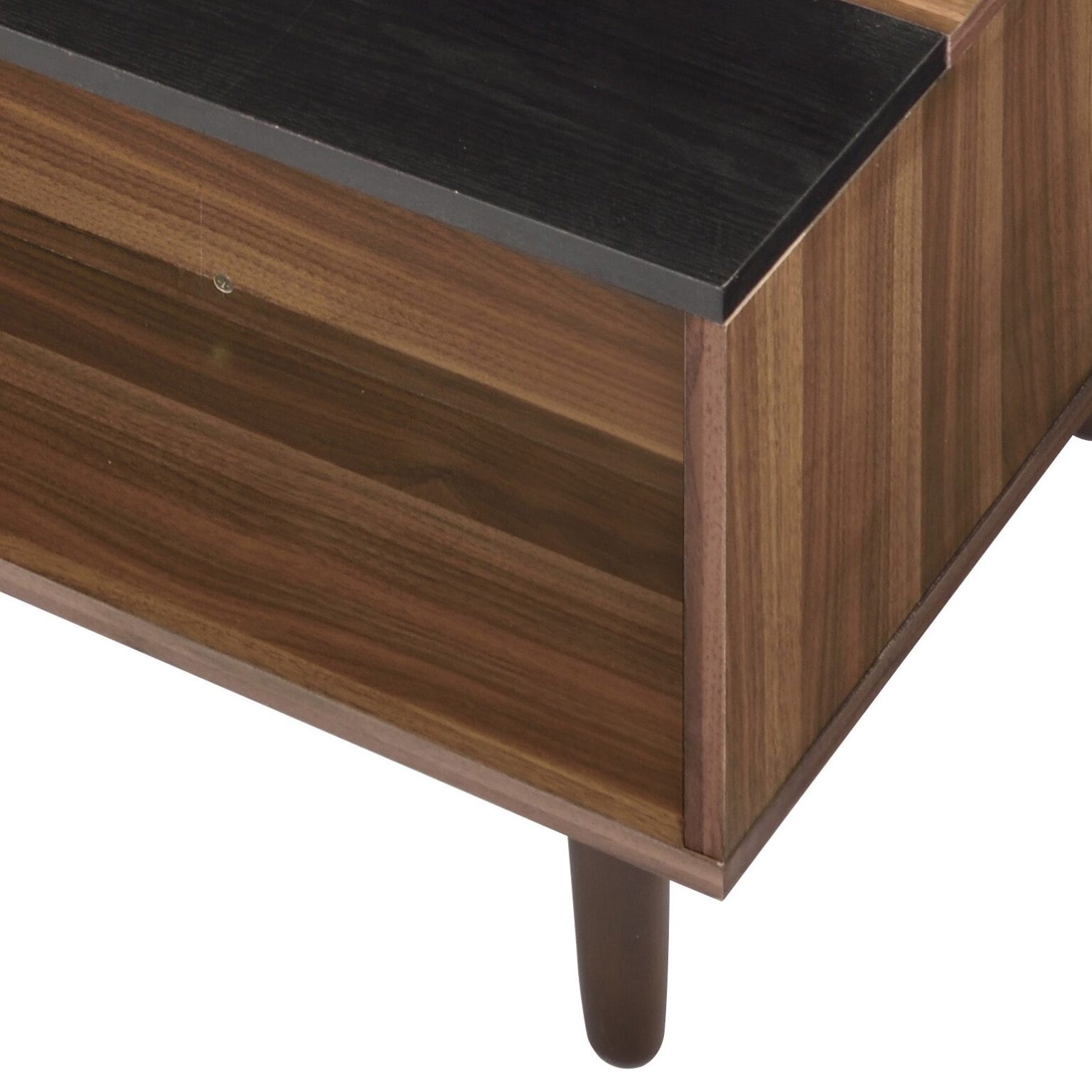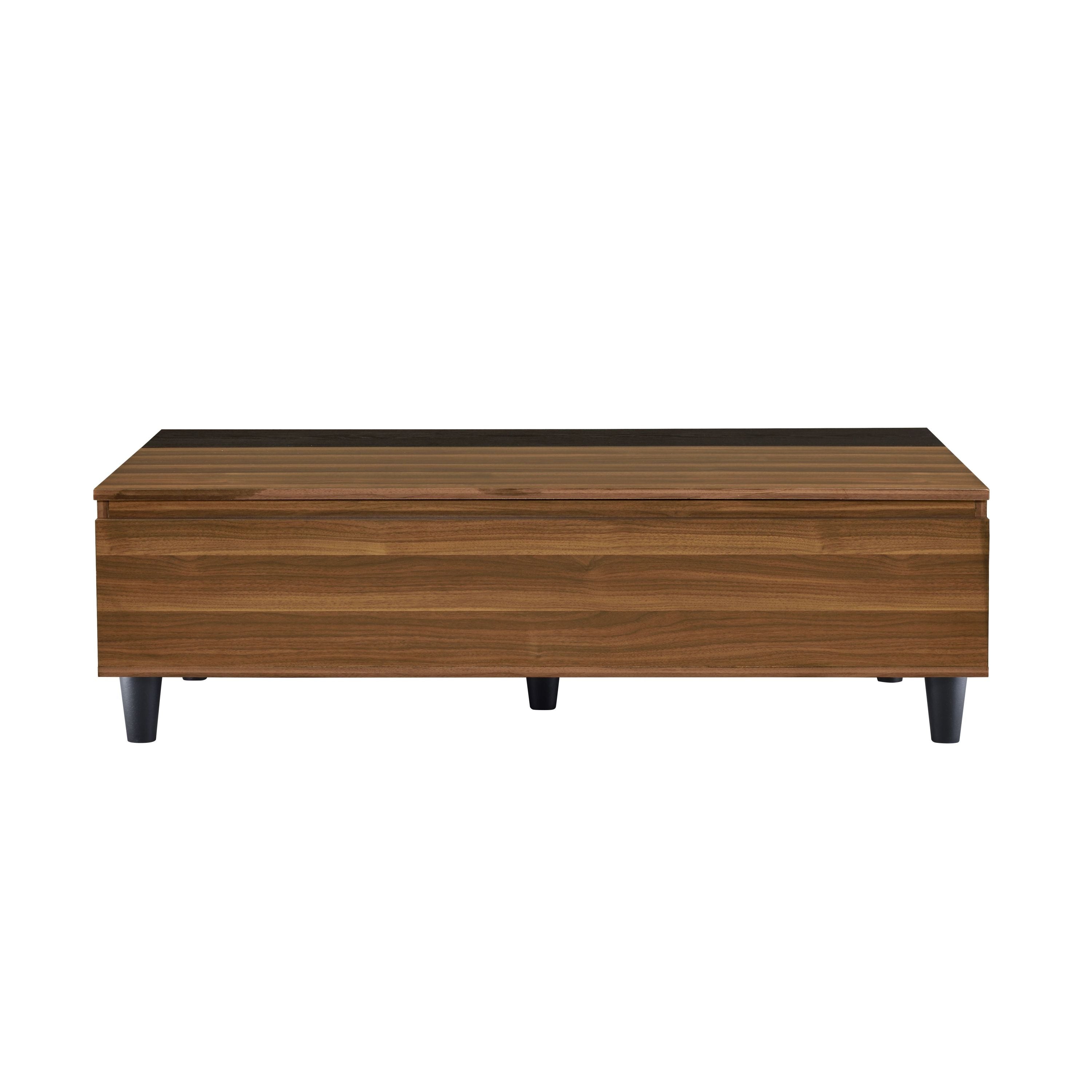 Love nest essentials. Our walnut and black coffee table combines sleek style with clever storage, keeping your space organized and beautiful. Lift the top, reveal the secrets, and enjoy the perfect blend of functionality and romance.