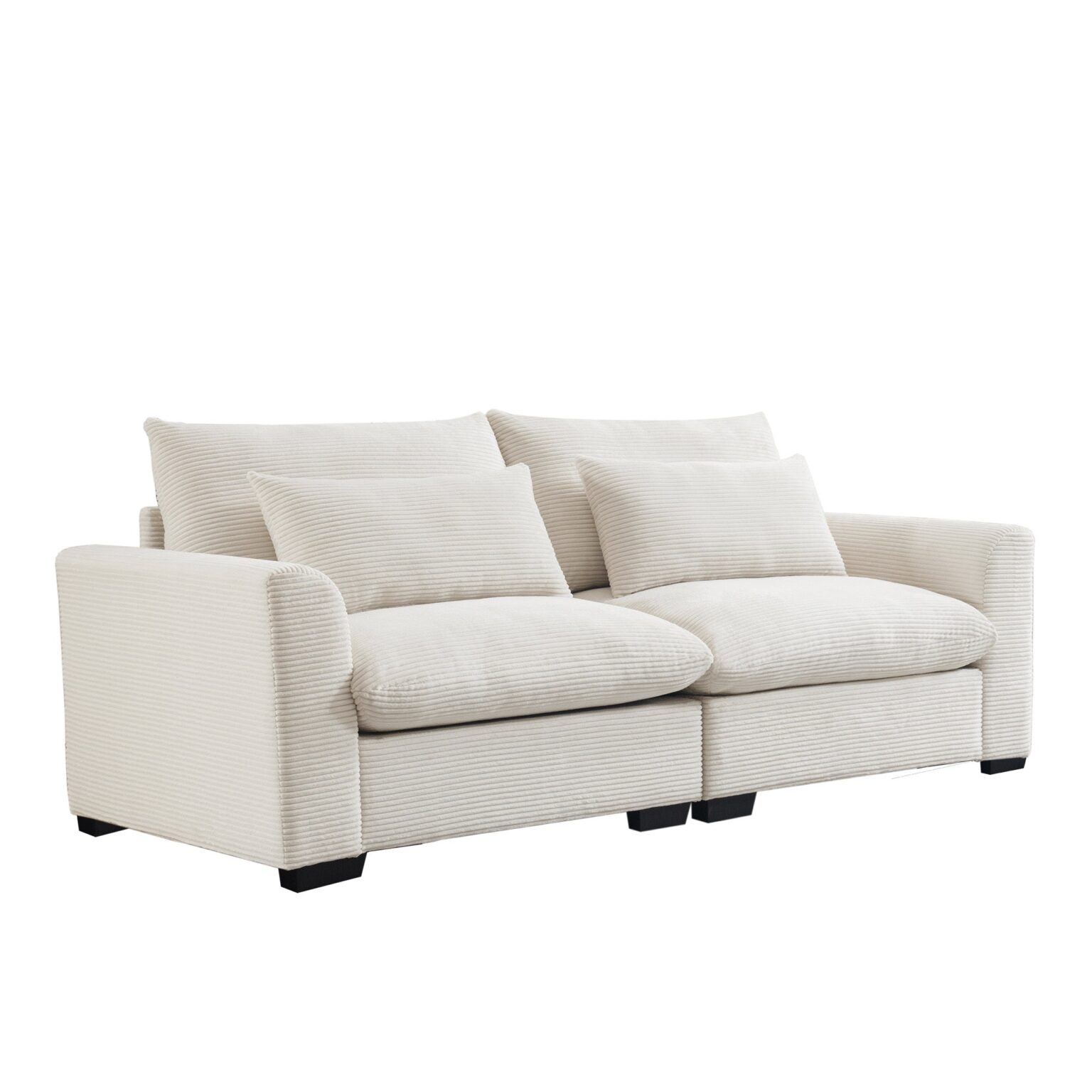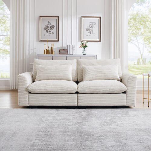 Walker Edison | Beige Corduroy Deep Seat Loveseat Couch
