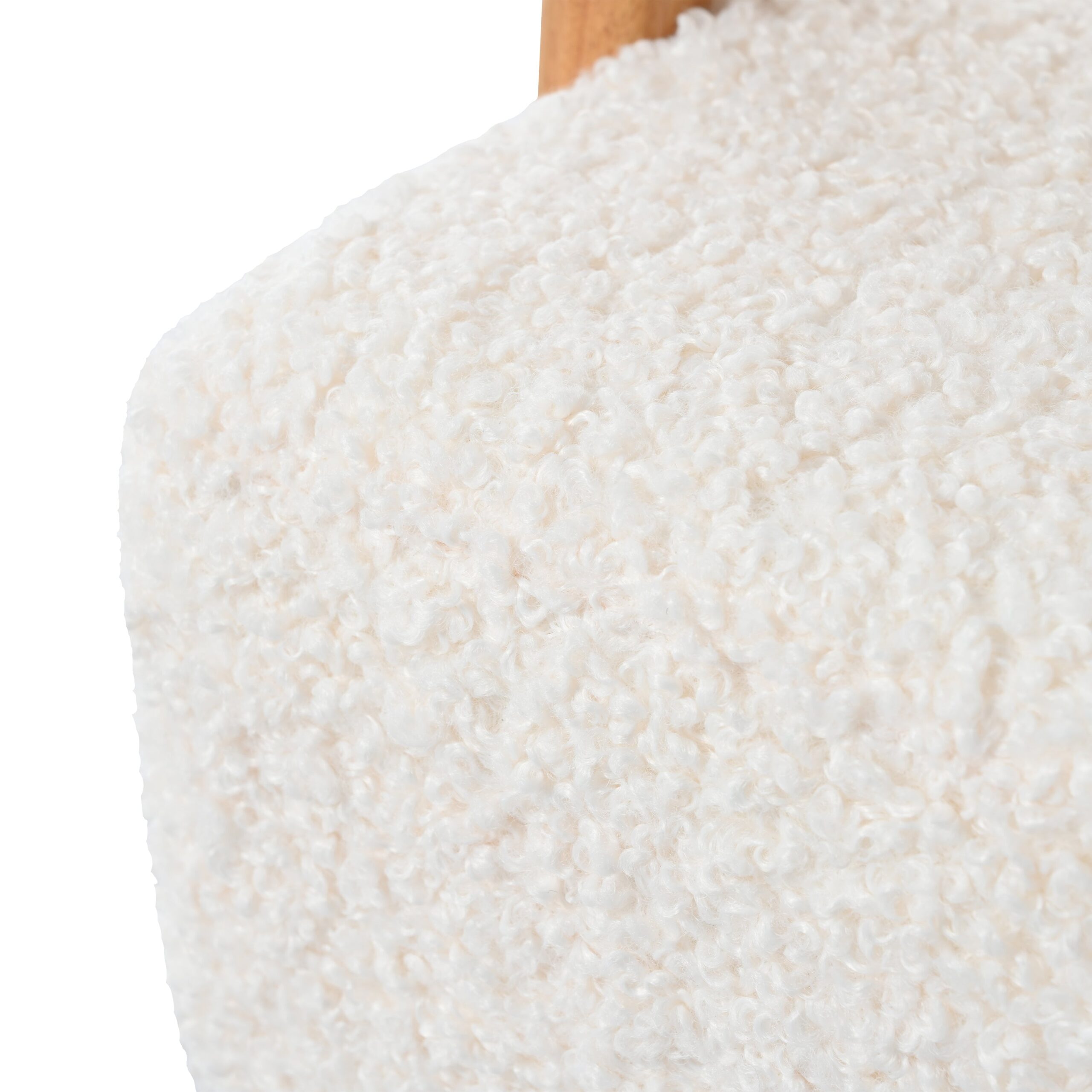 Prepare to fall in love with the elegant design of this accent chair. Designed to inject instant modern oomph into your space, this chair features a solid wood frame for sturdy durability and is outfitted with rich Teddy fabric for a luxe finish. Pair this mid-century Barrel chair with a clear table to showcase its beauty from every angle and add a contemporary slant to your dining room/living room group.