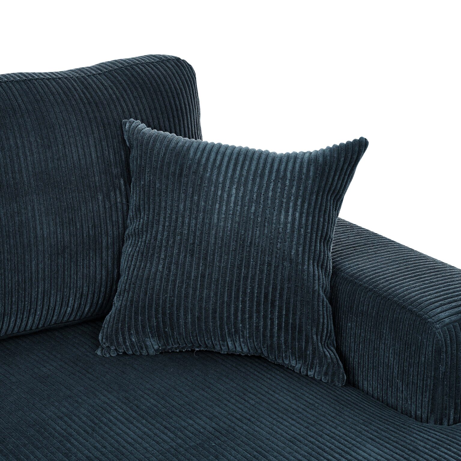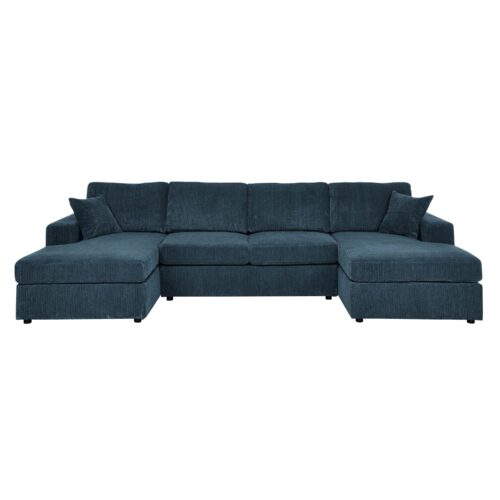 Bring bold personality and cloud-like comfort to your space with this teal corduroy sectional—perfectly sized for your living room, apartment, or first home. This stylish 3-piece set includes a sofa seat and two chaise lounges, seating four with ease while keeping things flexible. Use it in a U-shape for game night, or transform it into a cozy platform for movie marathons and lazy weekend naps.