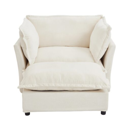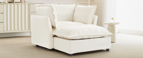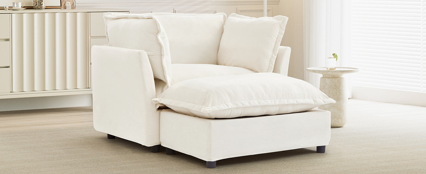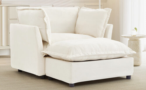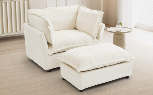 Walker Edison | Cozy Modern Chenille Armchair with Ottoman