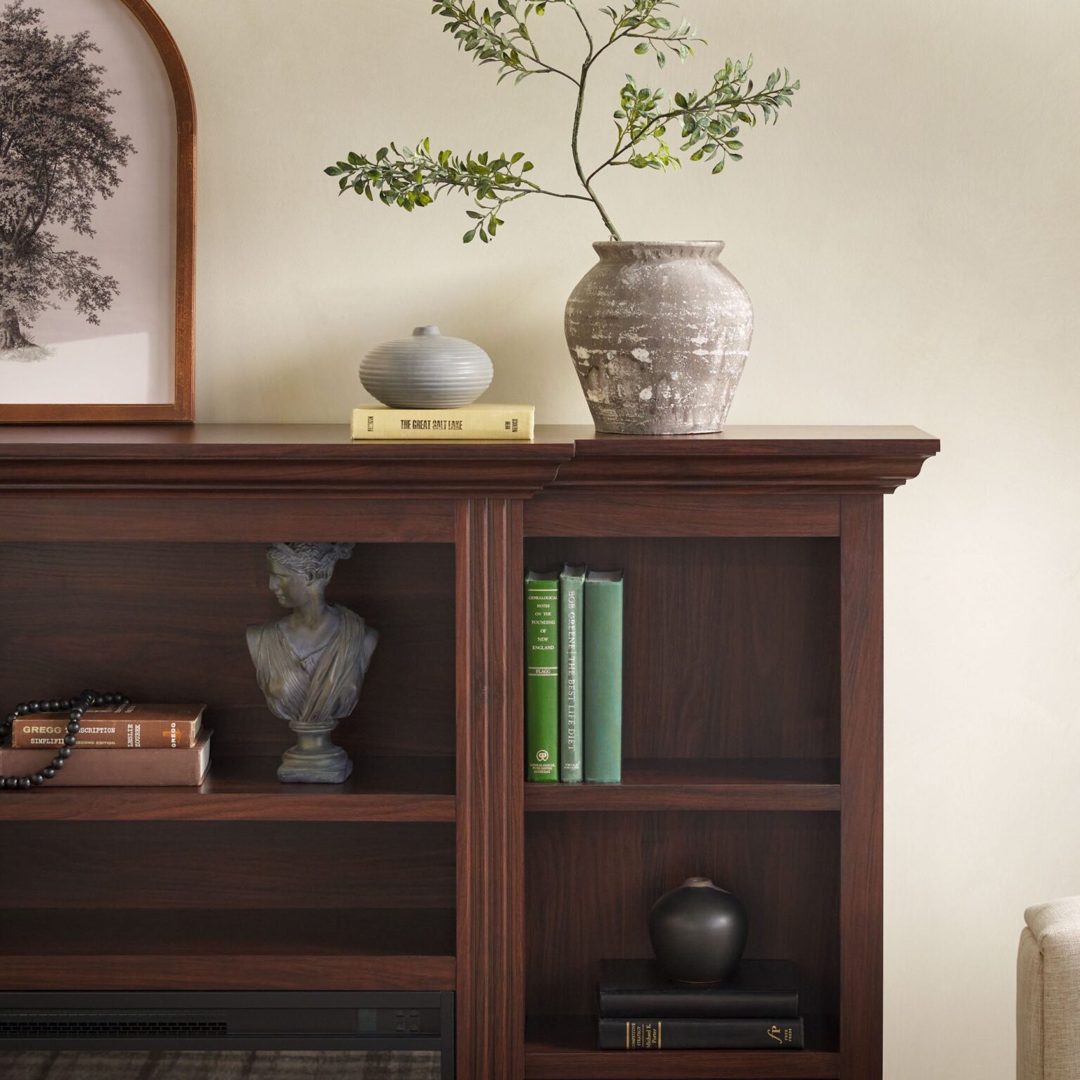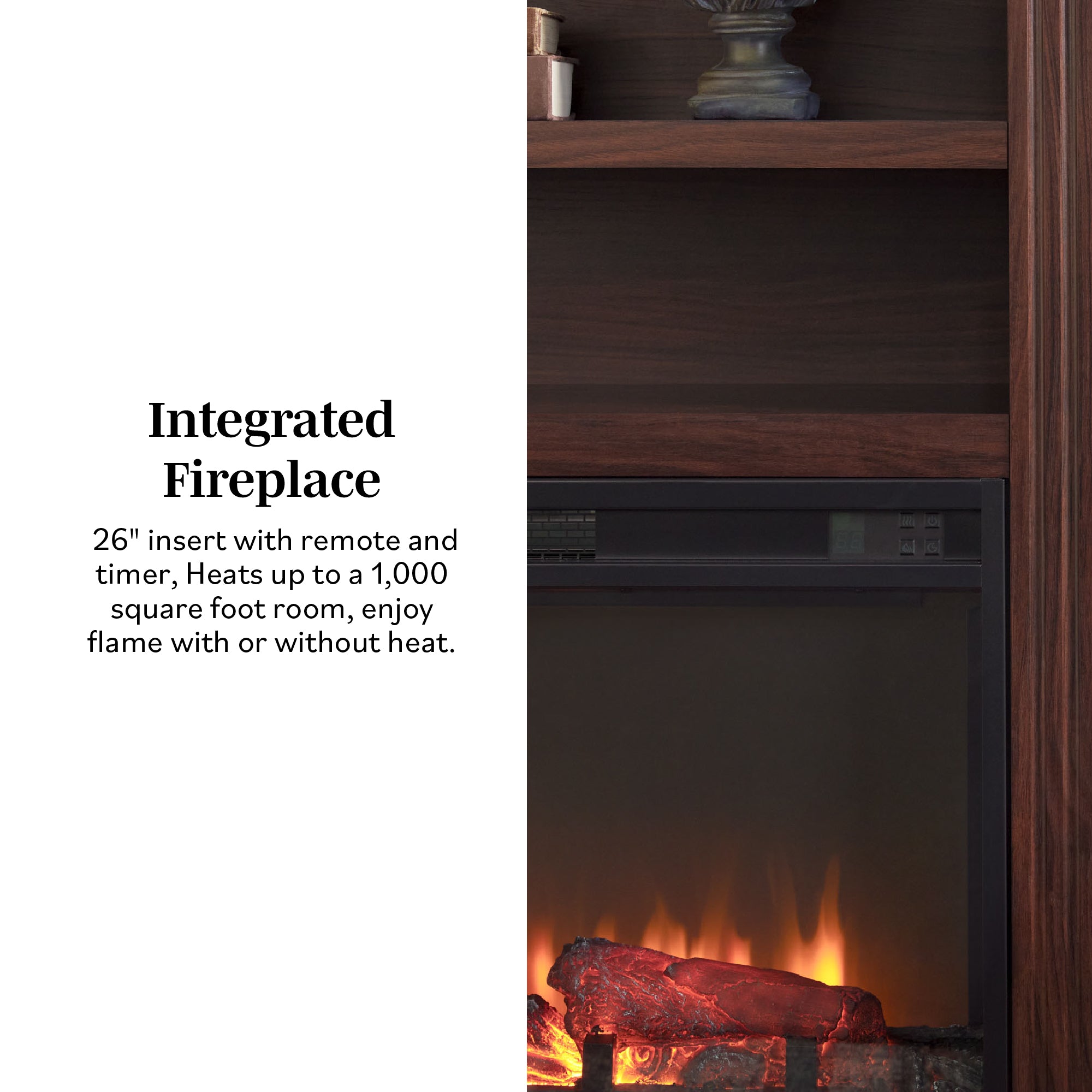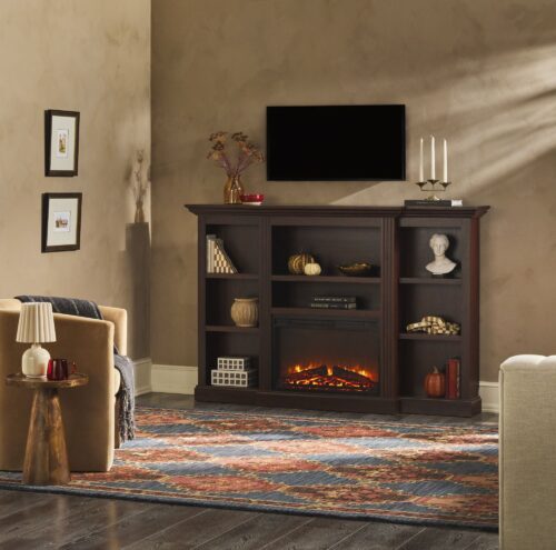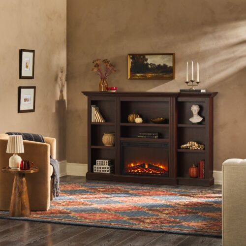 No built-in fireplace? No problem. The Cullen 70″ Traditional Electric Fireplace allows you to make any room cozier and more inviting… with no contractor required. Get the look and feel of a traditional hearth plus the added storage from open shelving. The timeless molding and groove details offer a high-end look that elevates your space, while the 26-inch fireplace insert allows you to enjoy the ambiance of a fire with or without heat. There’s no need to walk across the room to change the settings, as the handy remote and 8-hour timer allow you to control everything from afar. Here’s to year-round fireplace vibes.