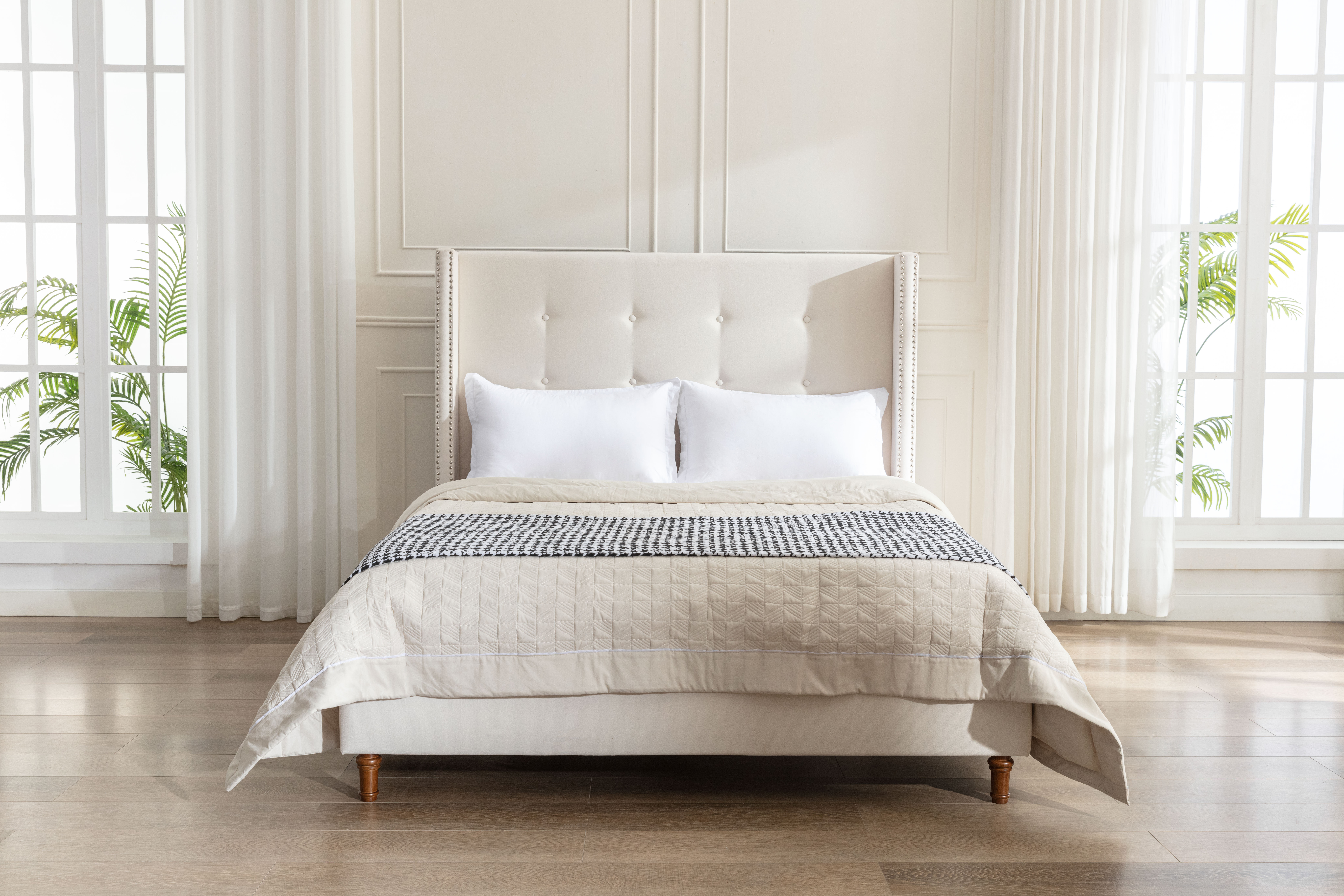Its 54″ height creates a welcoming focal point for any bedroom, feels just as premium as it looks. Premium and beautiful velvet fabric – the perfect place to drift off and dream. Embrace gorgeous and elegant style, featuring a nail-head trim wingbacks and traditional hand buttoned tufting. As always, your comfort and support are high priorities at us, with a sturdy wooden-slats base and metal side rails frame. Boasts beautiful solid wood feet in walnut effect, for the perfect finish to its elegant and classical design.