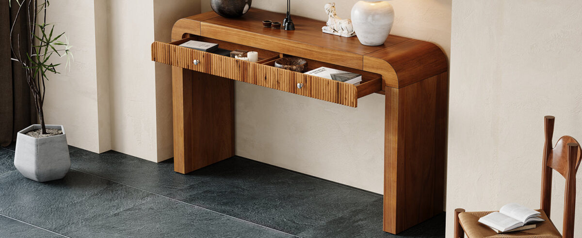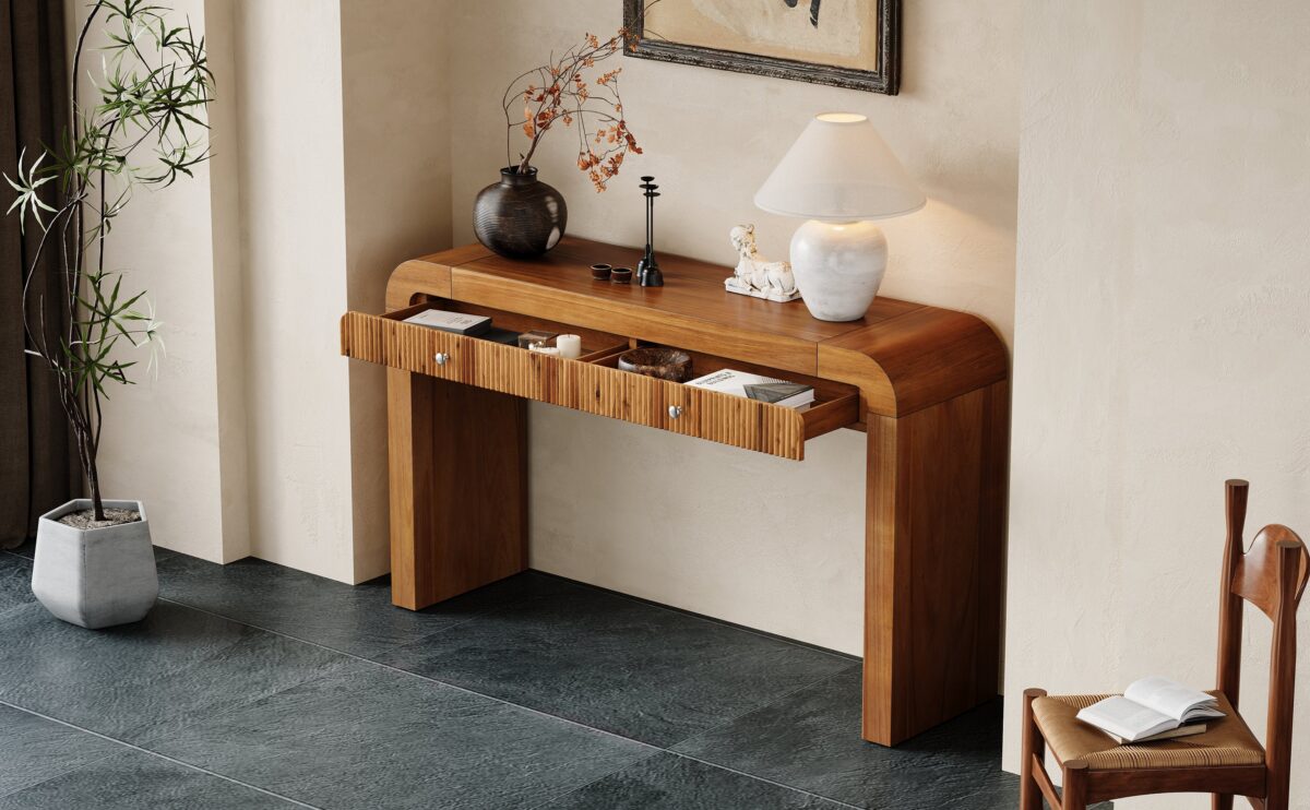 - Walker Edison | Entryway Fluted Curve Design Console/Desk Table with Drawers