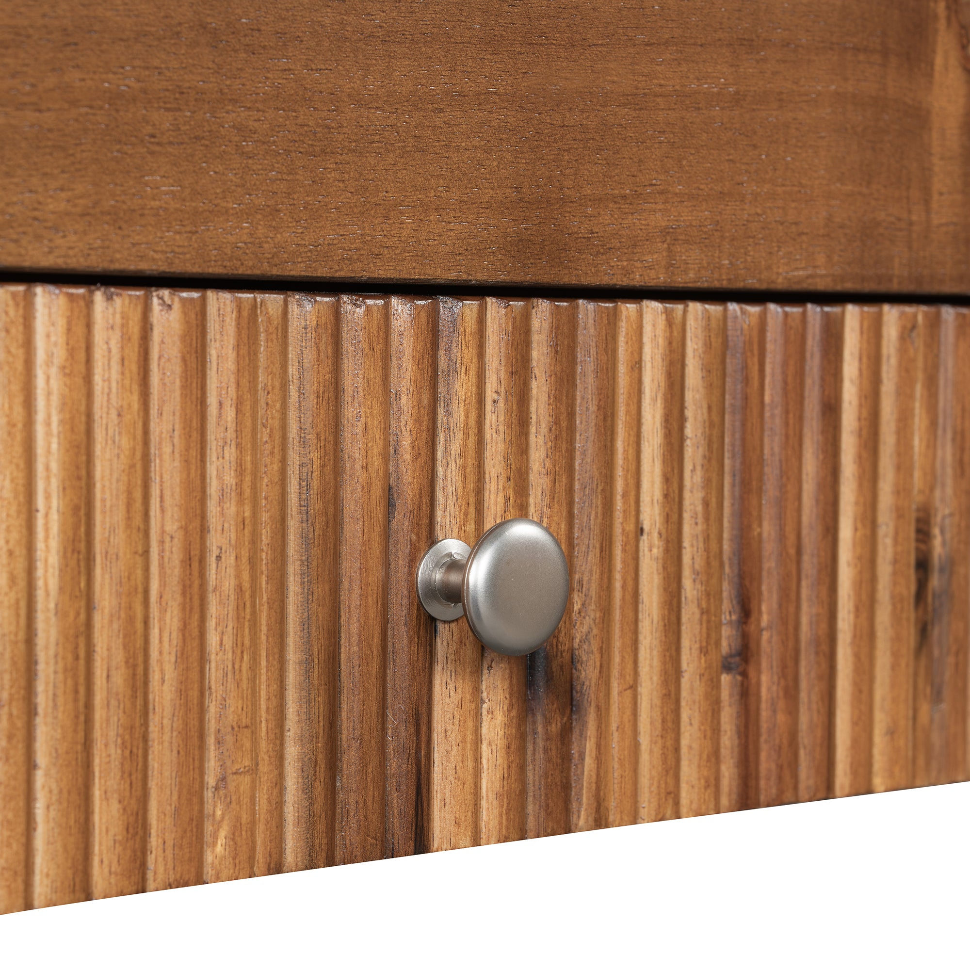 With its sturdy MDF core and natural wood veneer finish, this console table blends durability with rustic charm, showcasing authentic wood grain and a vintage, distressed look. The fluted-front drawer adds a touch of texture and holds up to 26.4 lbs across two compartments—perfect for storing everyday essentials like keys and mail. Thick, tapered legs complete the design, offering a stable build that supports up to 150 lbs while complementing farmhouse, industrial, or traditional spaces.