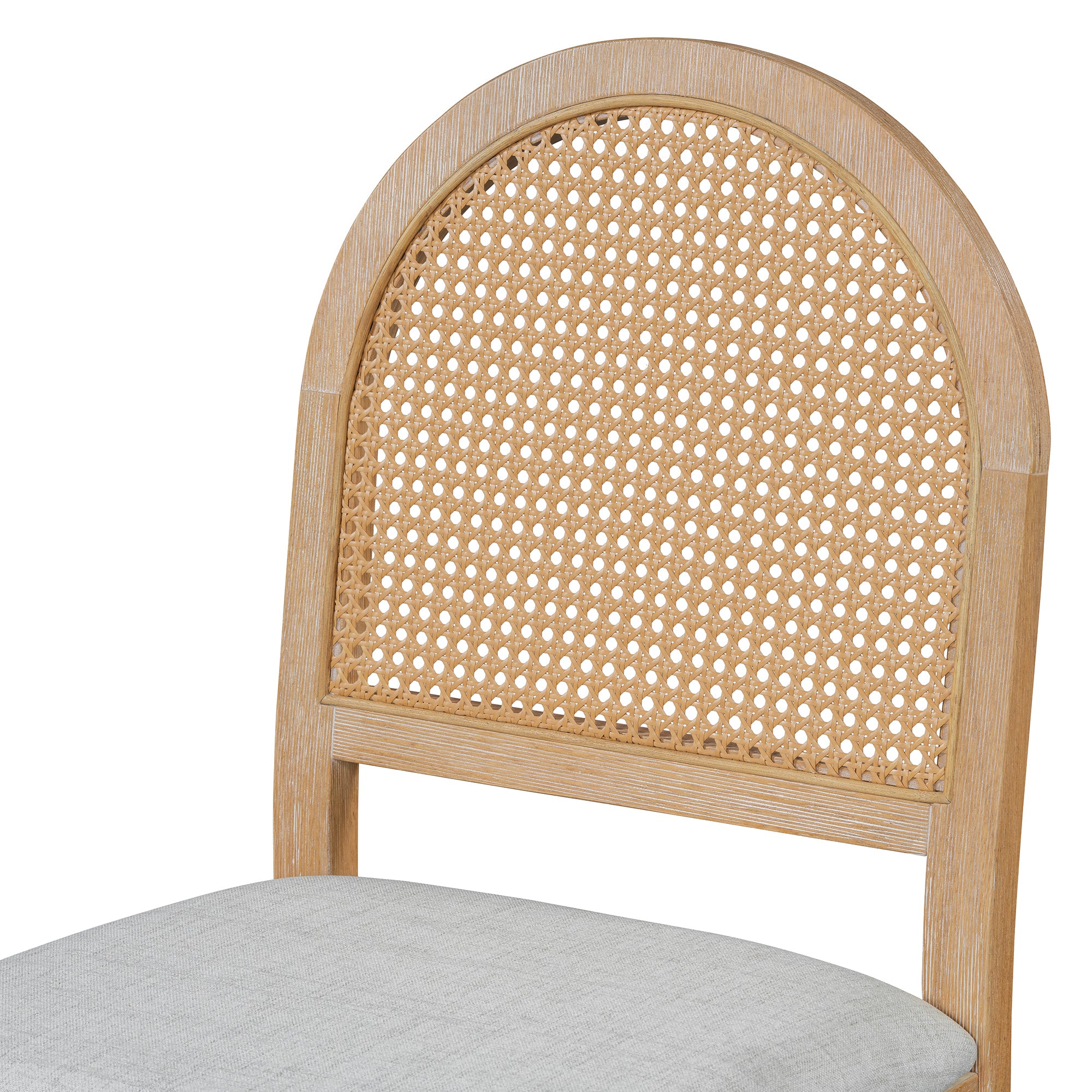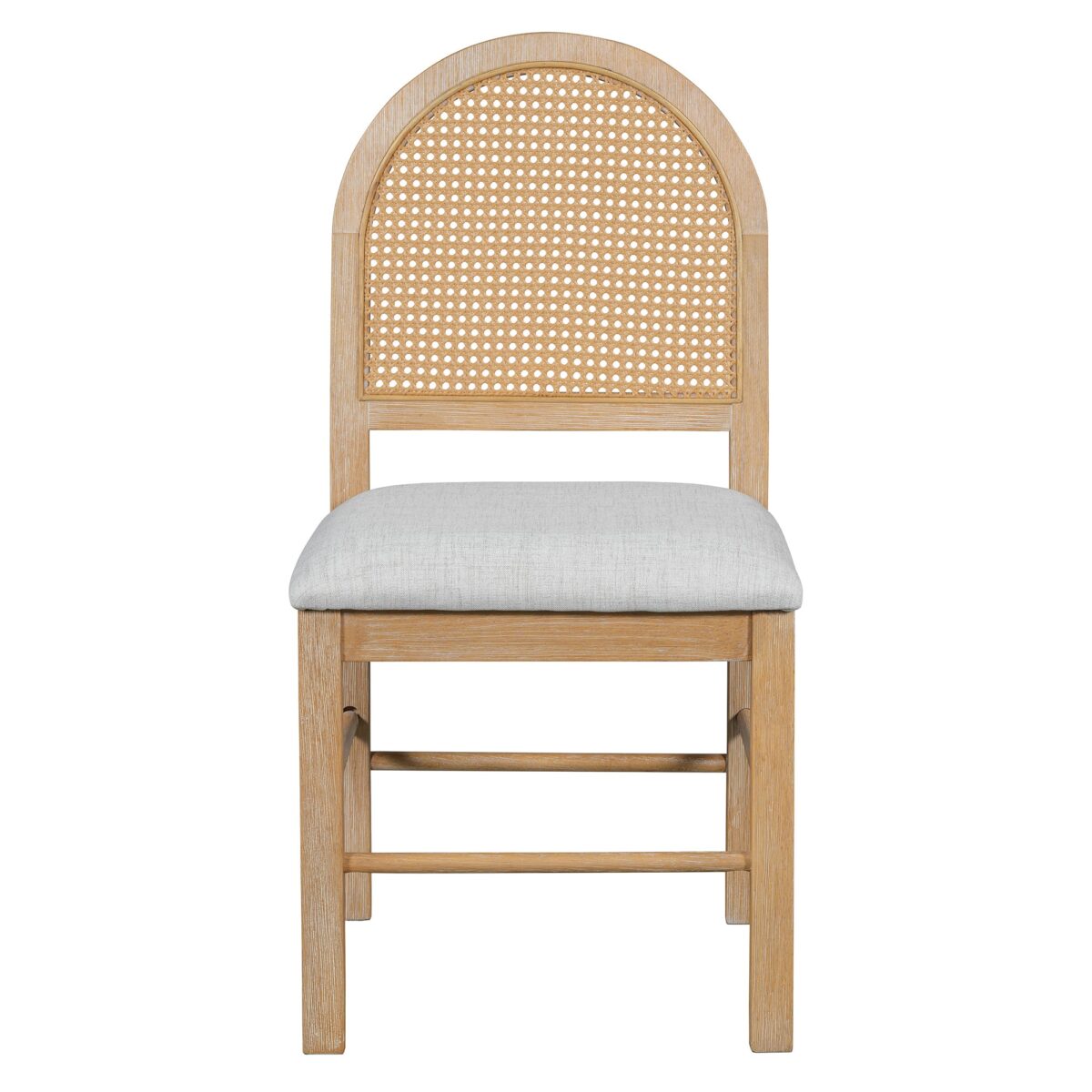 Material | Table Top&Legs: MDF + Oak Veneer Chair Frame: Rubber Wood + PVC Rattan |