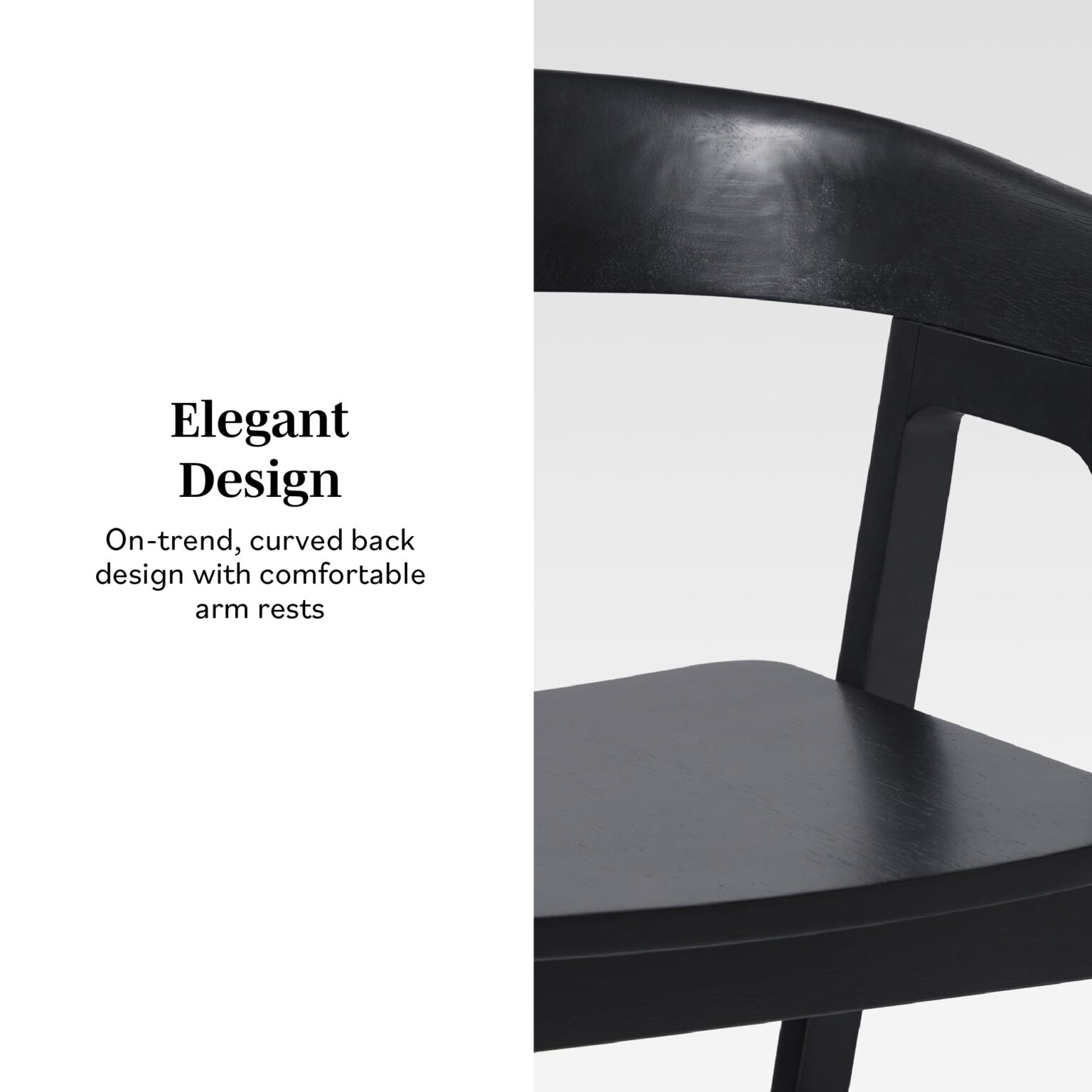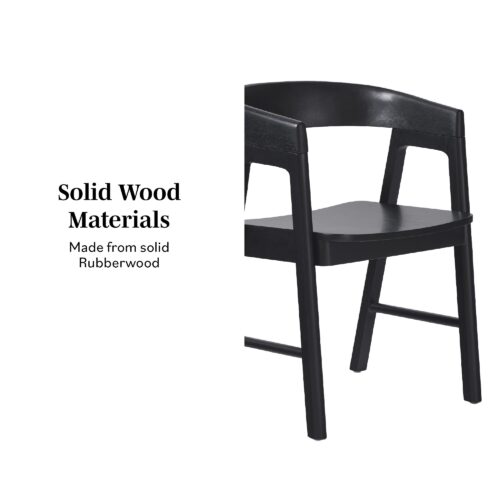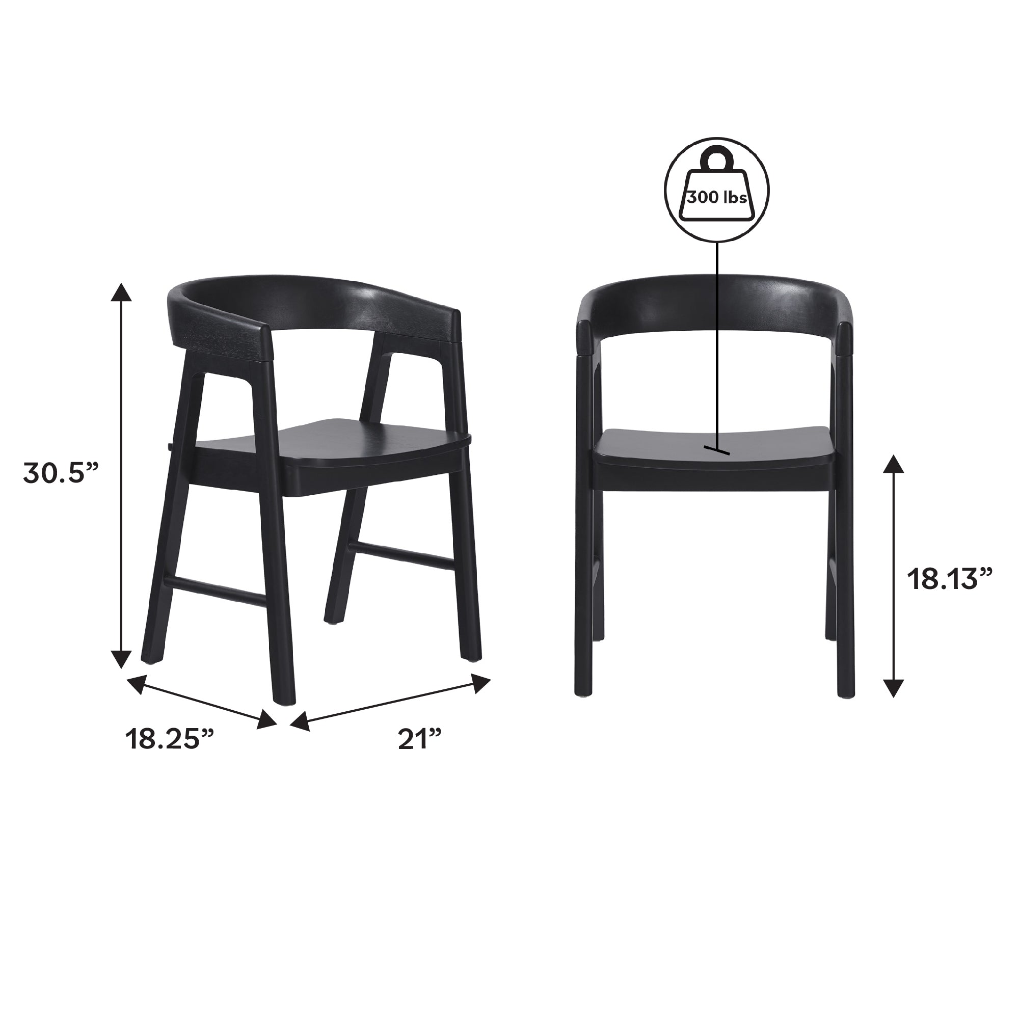 Get the perfect blend of style, comfort, and durability with this set of two Modern Solid Wood Rounded Back Dining Chairs. The trend-inspired curved back design is a win-win: it’s chic, unique, and perfectly hugs your frame. Supportive armrests add even more comfort for longer periods of sitting. With a design this good, it’s easy to linger longer over a great meal or productive study session.Â
