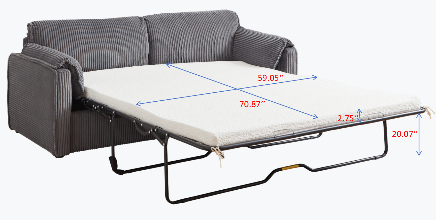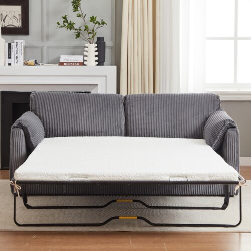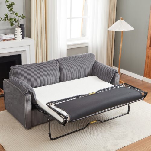 Sink into all-day comfort with this convertible sleeper sofa bed, designed for both style and support. Crafted with a reinforced steel frame and stabilizing legs, it’s built to hold up to 450 lbs with ease—making it perfect for relaxing solo or with a companion. Wrapped in breathable corduroy and filled with high-density sponge, the cushions feel like a dream whether you’re sitting, lounging, or sleeping. With three adjustable modes and quick, minimal assembly, this is your go-to piece for effortless comfort and modern flexibility.