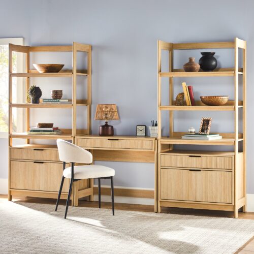 Whether you’re in work-from-home, study, or relaxation mode, this writing desk with a drawer is made with your needs in mind. With its on-trend reeded details and transitional design, this piece shines in the office — or any other room in the house. It’s pretty enough to show off in the entryway or living room, making it an ideal piece for studio apartments or smaller spaces. Don’t let its versatility fool you, as its spacious writing surface, pull-out storage drawer, and sturdy build mean this sleek desk is ultra-functional, too. Made from robust, warp-resistant MDF and resilient laminate, the Holmes writing desk is equally ready for work, crafting, or simply holding your car keys and package deliveries.