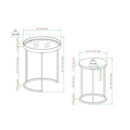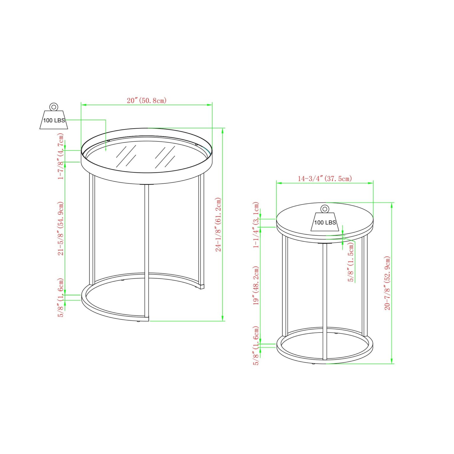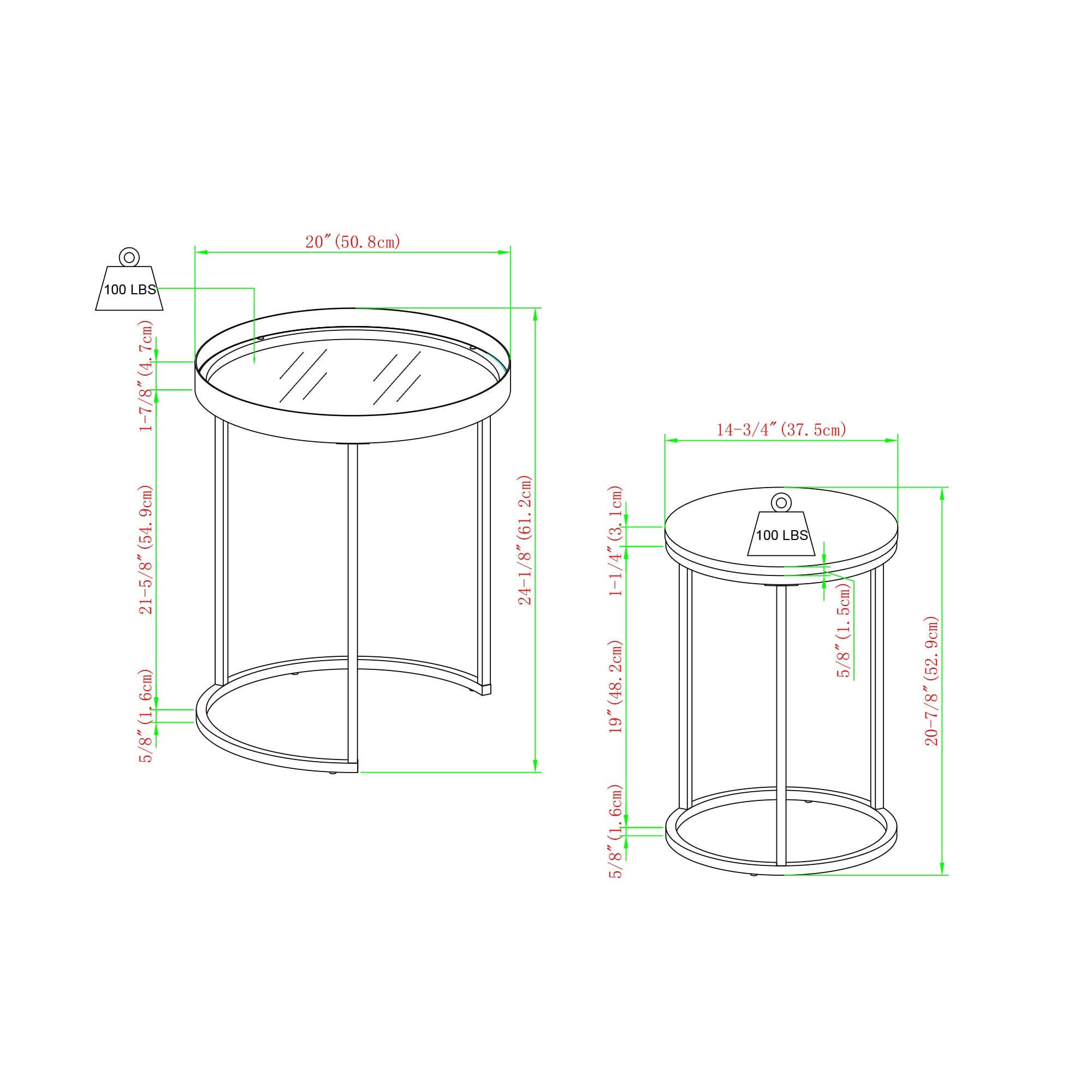 Whether they’re side by side or nestled together to save space, these contemporary side tables are the perfect perch for your favorite décor. Whether they’re your couchside storage, nightstands, or accent tables, this nesting table duo is fit for anywhere and everywhere with their sleek, yet slight build and sturdy, painted metal base. Display your work-from-home laptop setup, TV dinner, or new scented candle in polished poise with the unique C-shape frame and tempered safety glass top of the large side table and durable laminate finish of the smaller piece.