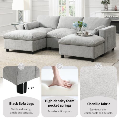Walker Edison | Modern Cloud Chenille Modular Sectional Sofa with Storage