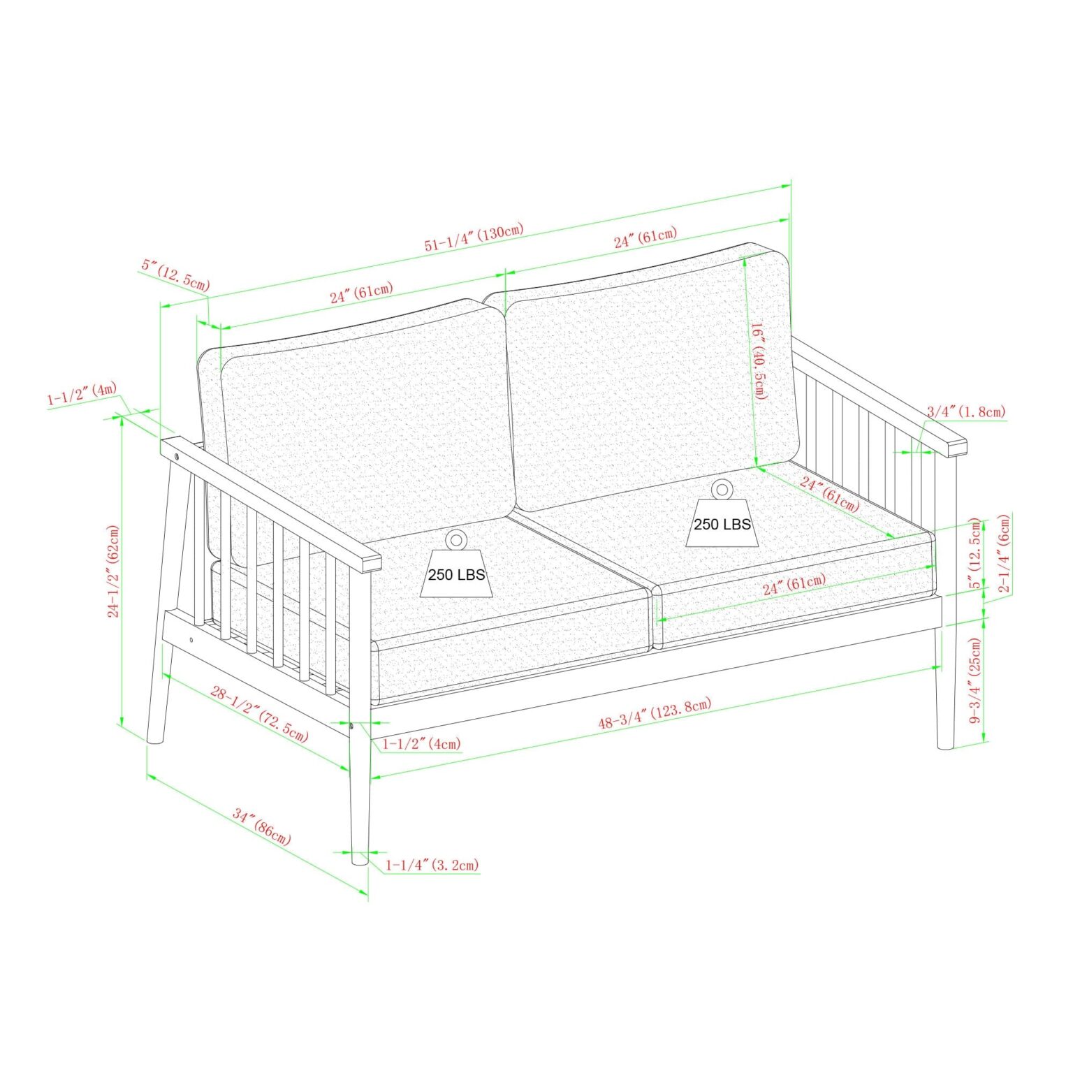 - Loveseat assembled dimensions: 51.25” L x 34” W x 24.5” H