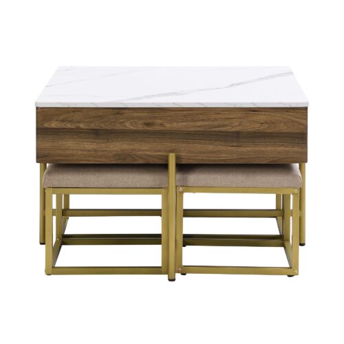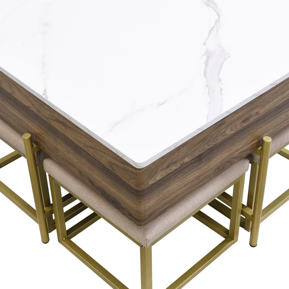 Modern Square Lift-Top Coffee Table Set with Storage & 4 Ottomans White & Walnut