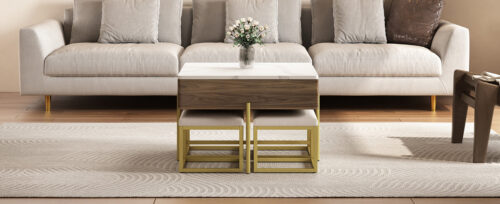 The Modern Square Lift-Top Coffee Table Set is a stylish, space-saving, and multifunctional addition to any home. With its lift-top feature, hidden storage, included ottomans, and sleek white & walnut finish, this set is perfect for both everyday use and entertaining guests.