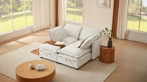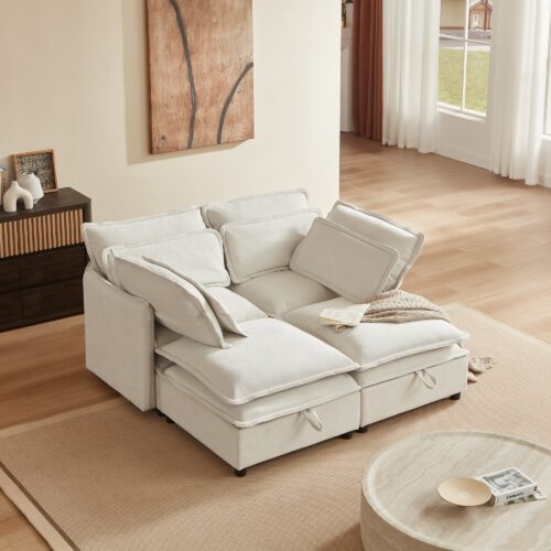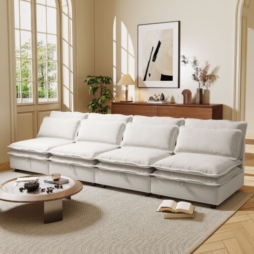 Walker Edison | Modular Double-Layer Cushion Modular Sofa with Storage