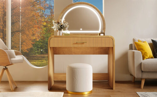 Reflect your beauty, inside and out, with our elegant vanity table. Soft LED lights illuminate your path to self-love, while ample storage keeps your treasures organized. This stunning piece doubles as a desk, blending functionality with romance. A perfect gift for the love of your life.