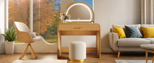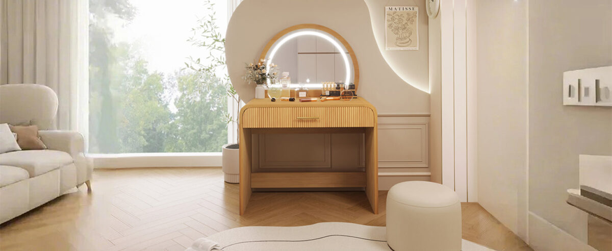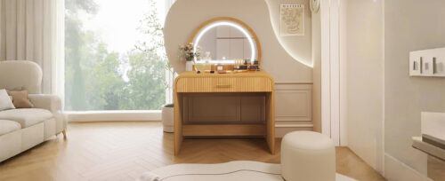 Be the first to review “Walker Edison | Natural Reeded Curve Design Makeup Vanity Desk with Mirror” Cancel reply