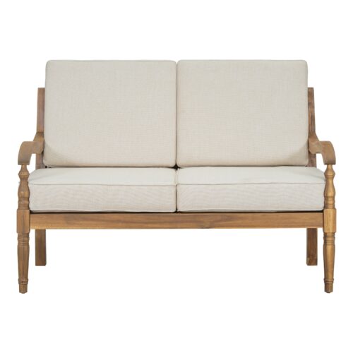 Walker Edison | Outdoor Acacia Wood 2 Piece Loveseat Sofa with Table