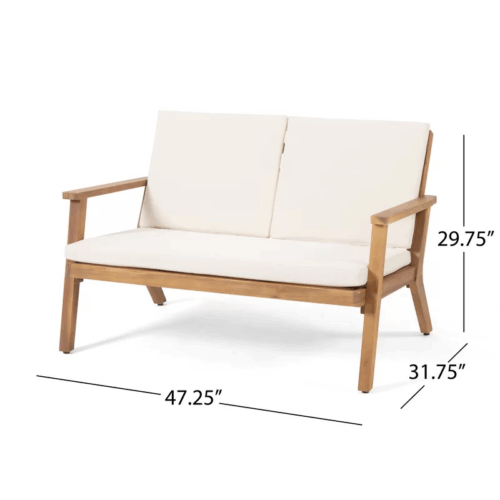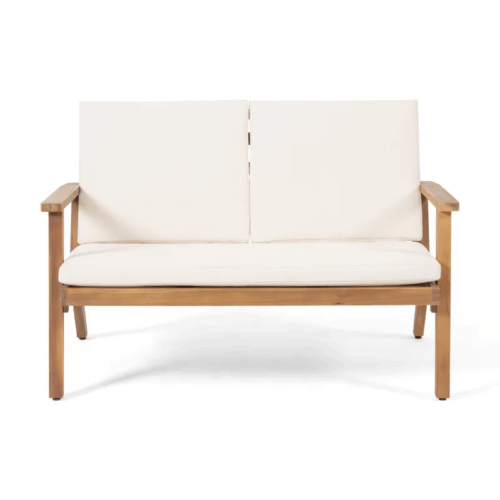 Bring timeless charm to your outdoor space with this mid-century modern patio chat set. Crafted from solid acacia wood with a smooth finish and traditional slatted design, it blends classic style with a modern refresh.