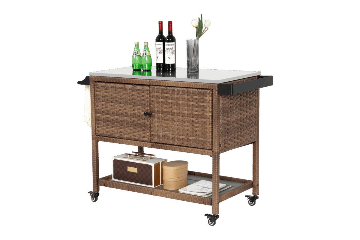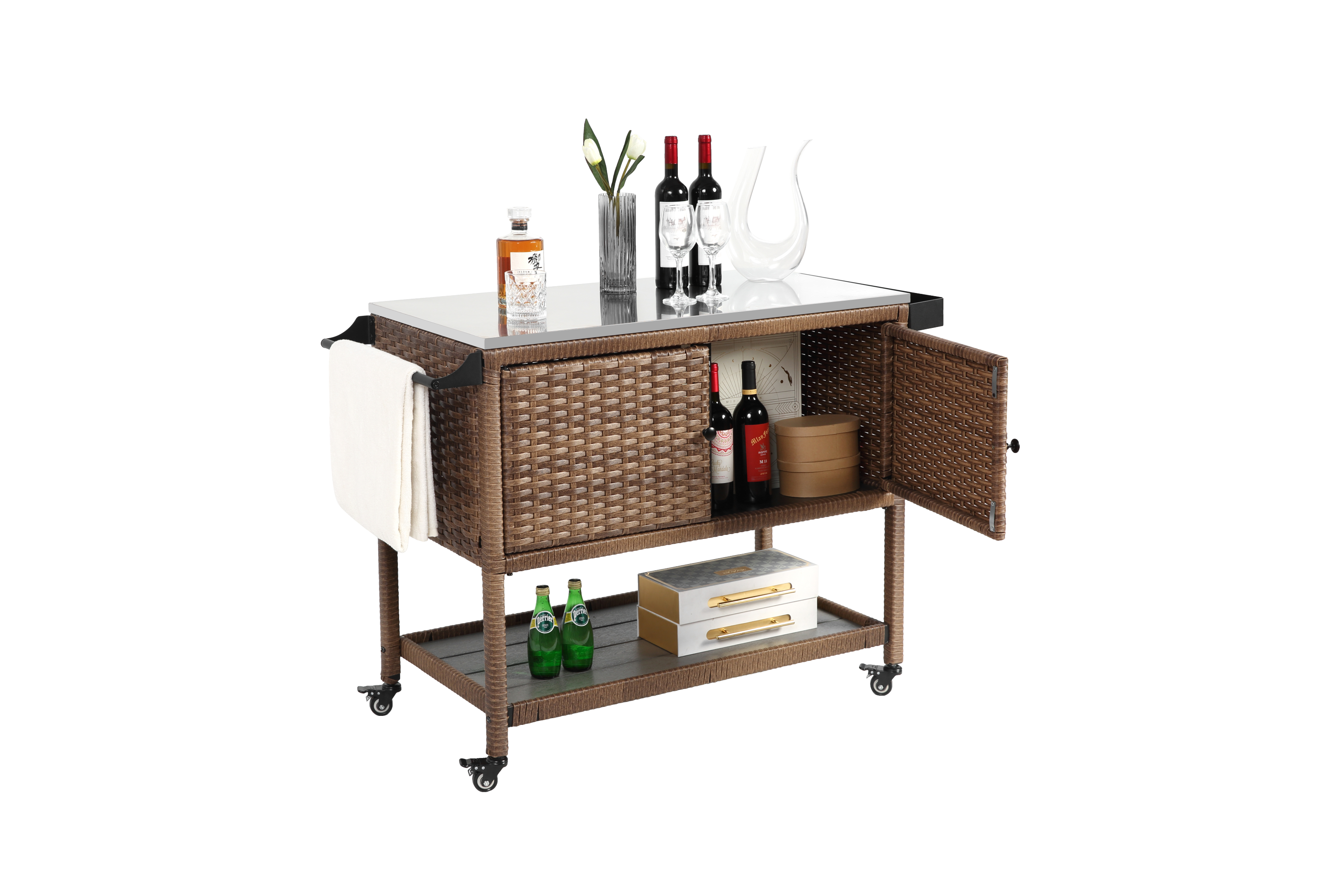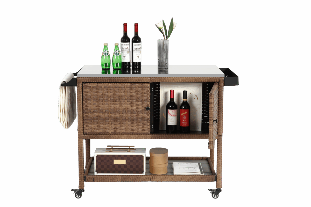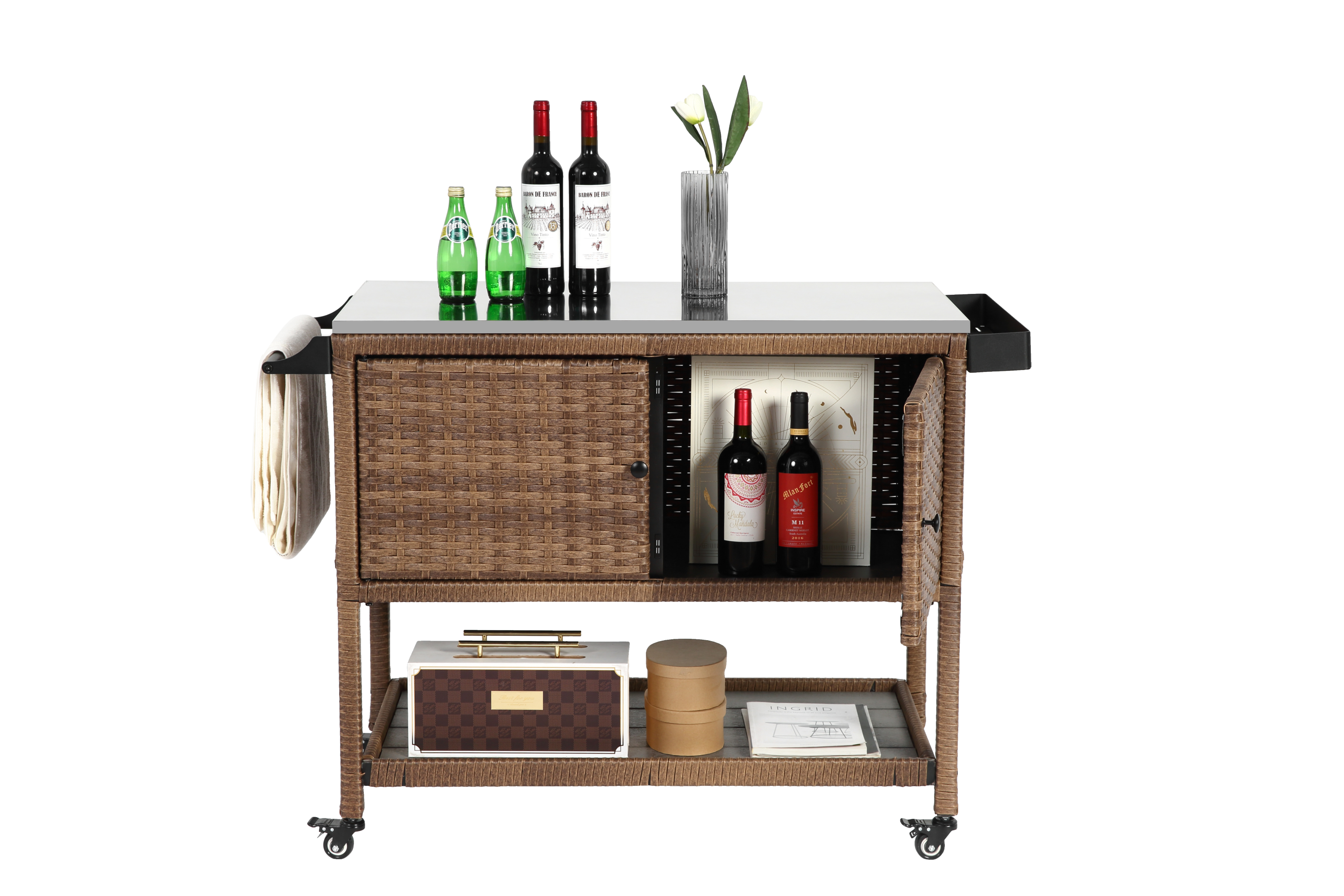 Large bar cart, Outdoor Kitchen Wicker Island Rolling Cart & Storage Cabinet