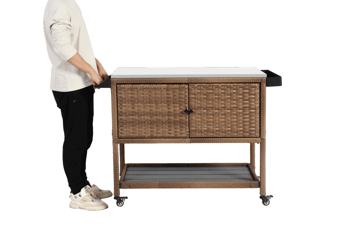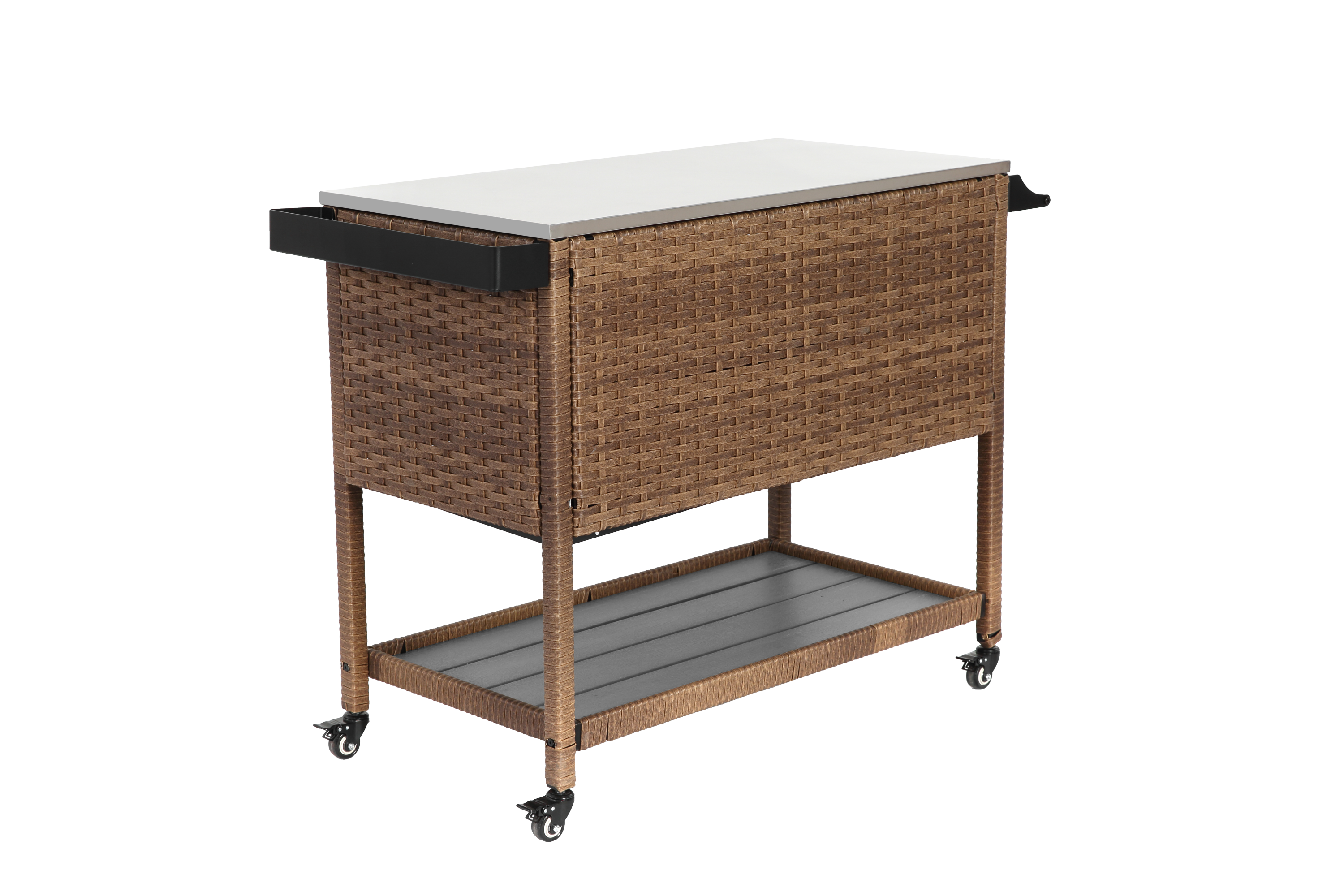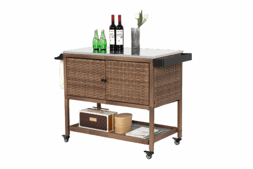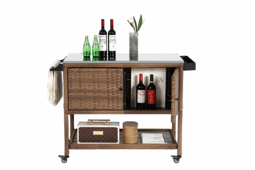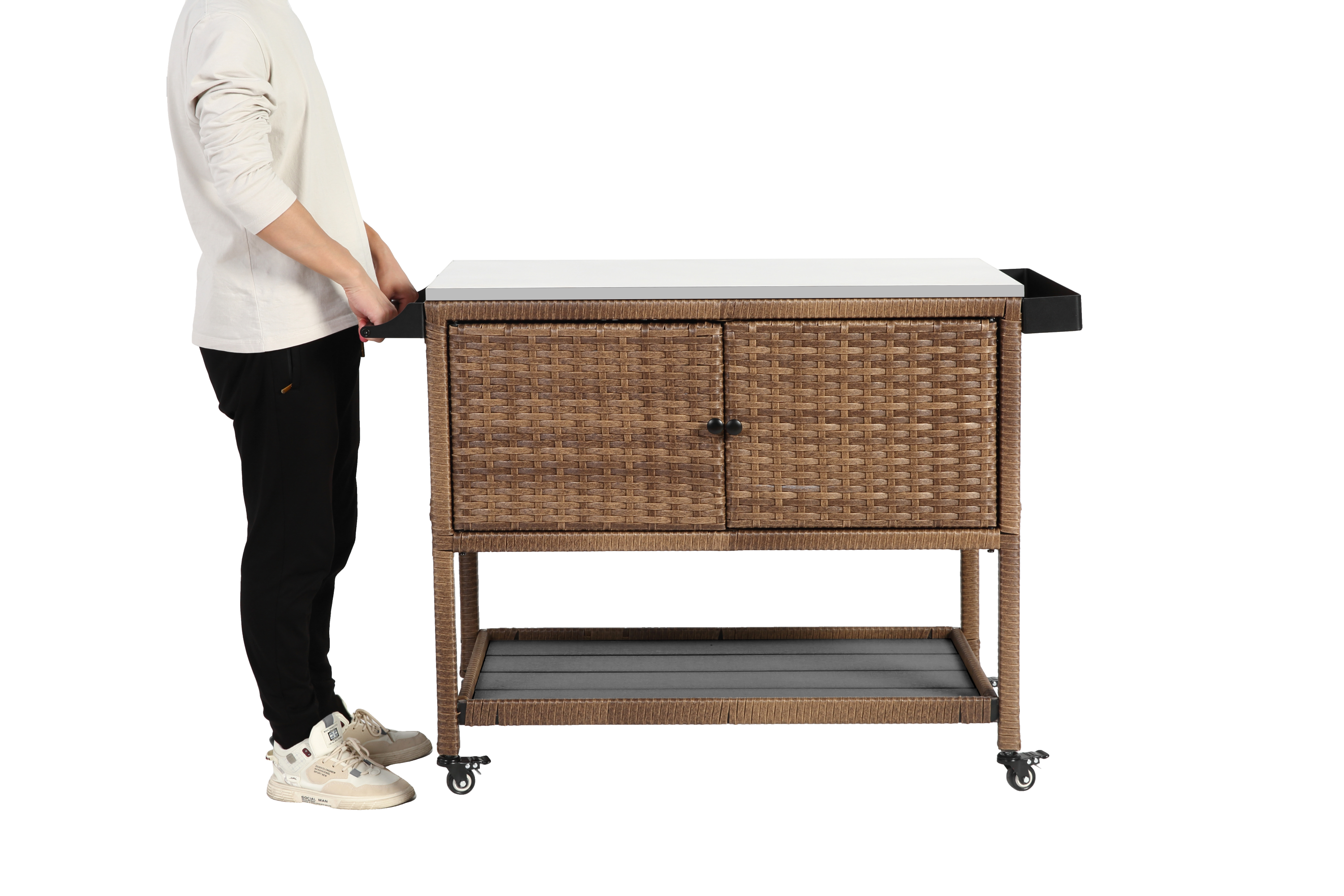 Large bar cart, Outdoor Kitchen Wicker Island Rolling Cart & Storage Cabinet