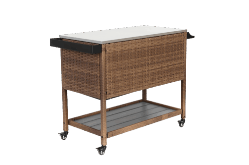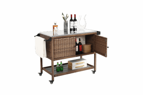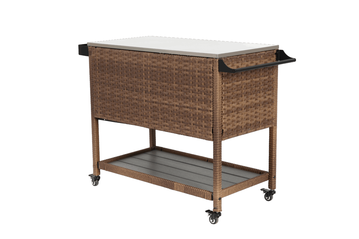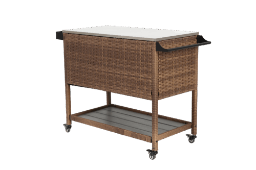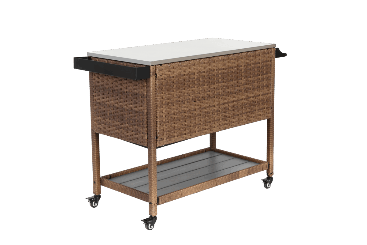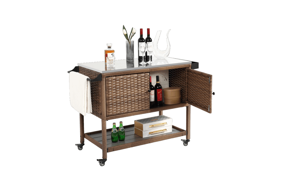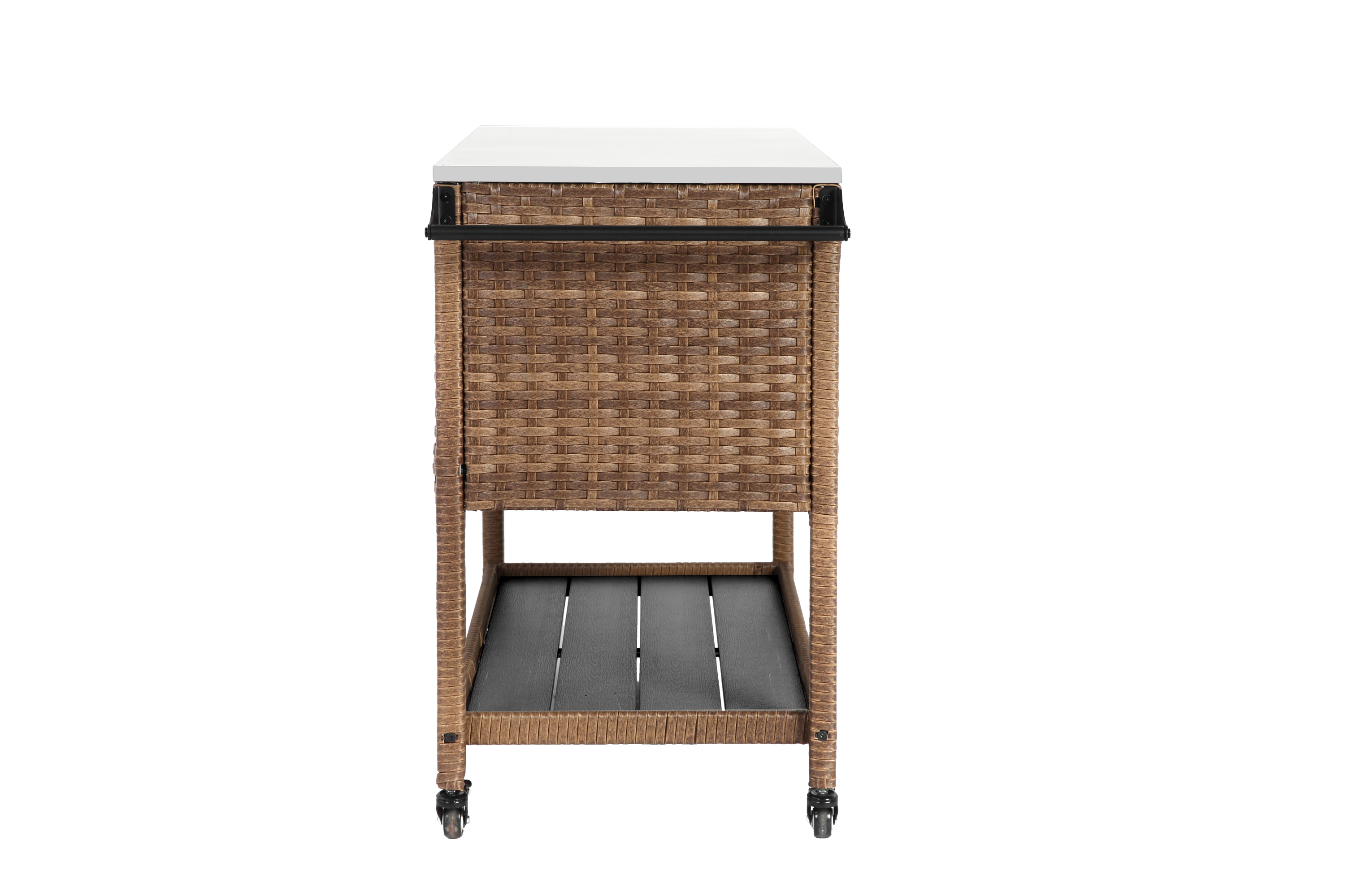 Large bar cart, Outdoor Kitchen Wicker Island Rolling Cart & Storage Cabinet
