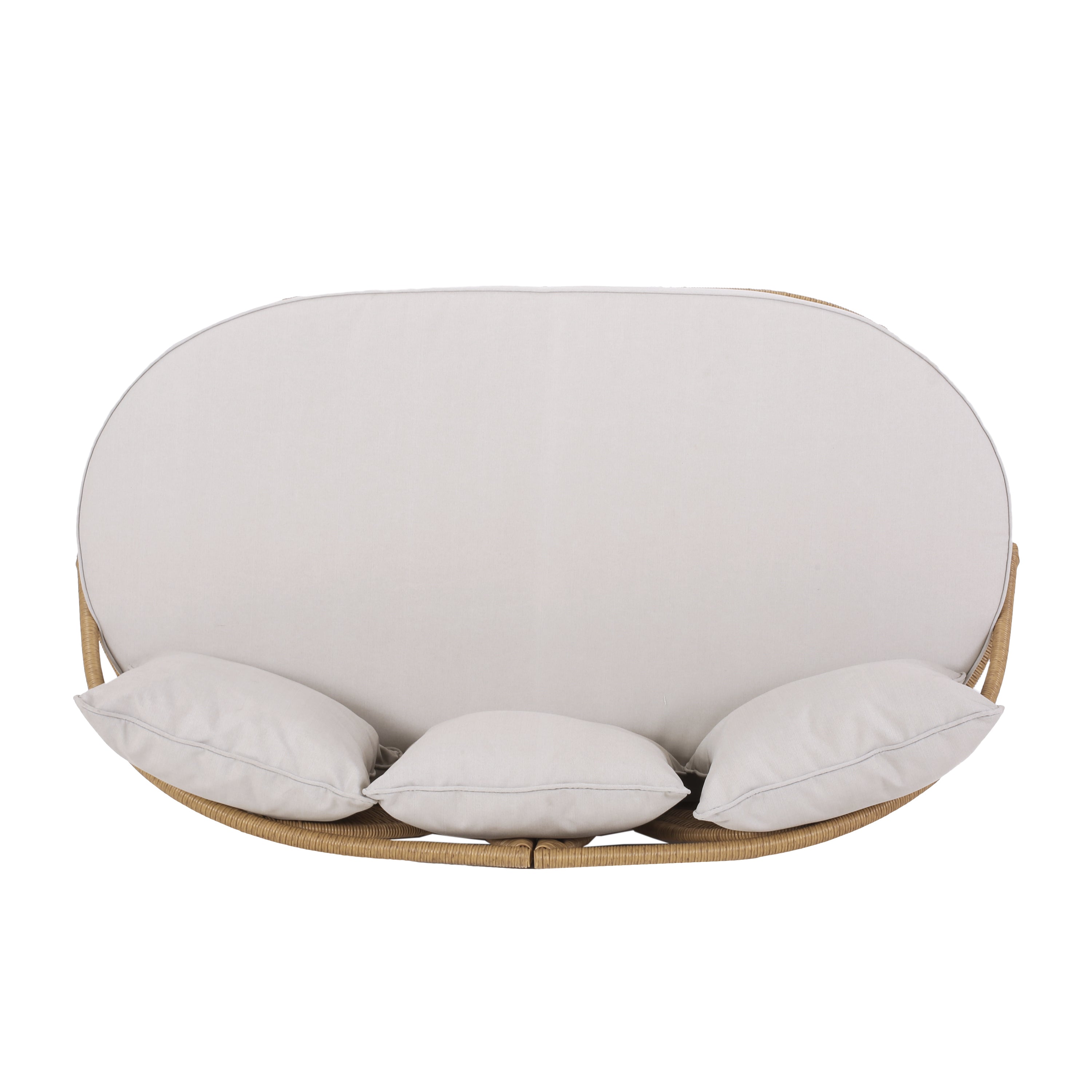 Bring boho beauty to your patio with our unique outdoor daybed. A plush seat cushion and 3 matching throw pillows promise endless comfort, while water-resistant surfaces make this daybed equally practical and pretty. A soft floral motif contributes to the earthy aesthetic, and a high, curved back guarantees that this daybed will instantly become everyone’s favorite place to land and lounge. Woven wicker provides all the neutral flair your yard needs. Poolside relaxation or patio leisure get an elevated new look with this free-spirited daybed.