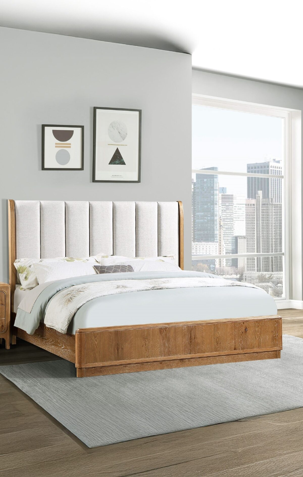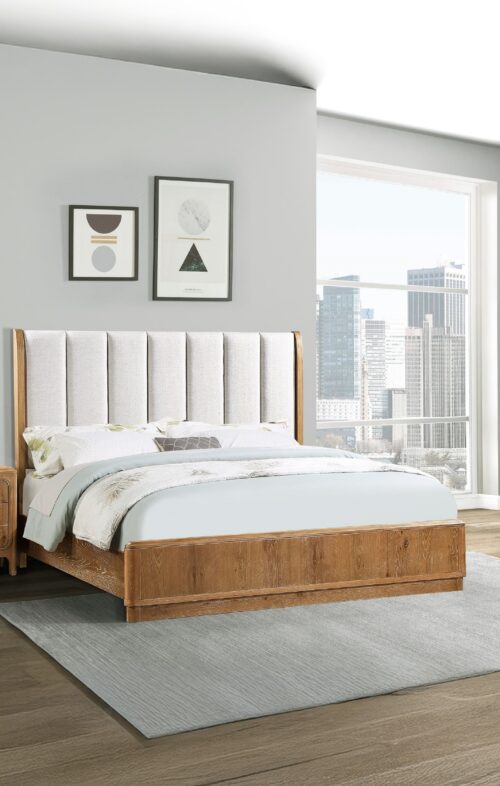 Transform your bedroom into a serene retreat with this Cerused Natural Upholstered Panel Bed. This elegantly crafted bed seamlessly blends timeless sophistication with modern comfort, making it a perfect centerpiece for your personal sanctuary. Imagine waking up in a light-filled space, the subtle cerused natural wood finish capturing the morning sun, and the plush upholstered headboard offering a cozy spot for evening reading—this is bedroom living redefined for today’s lifestyle. Designed for homes that value both form and function, this bed’s transitional aesthetic fits beautifully in both urban lofts and cozy suburban homes. It caters to those who desire a touch of luxury while enjoying the tranquility of simpler, nature-inspired details.