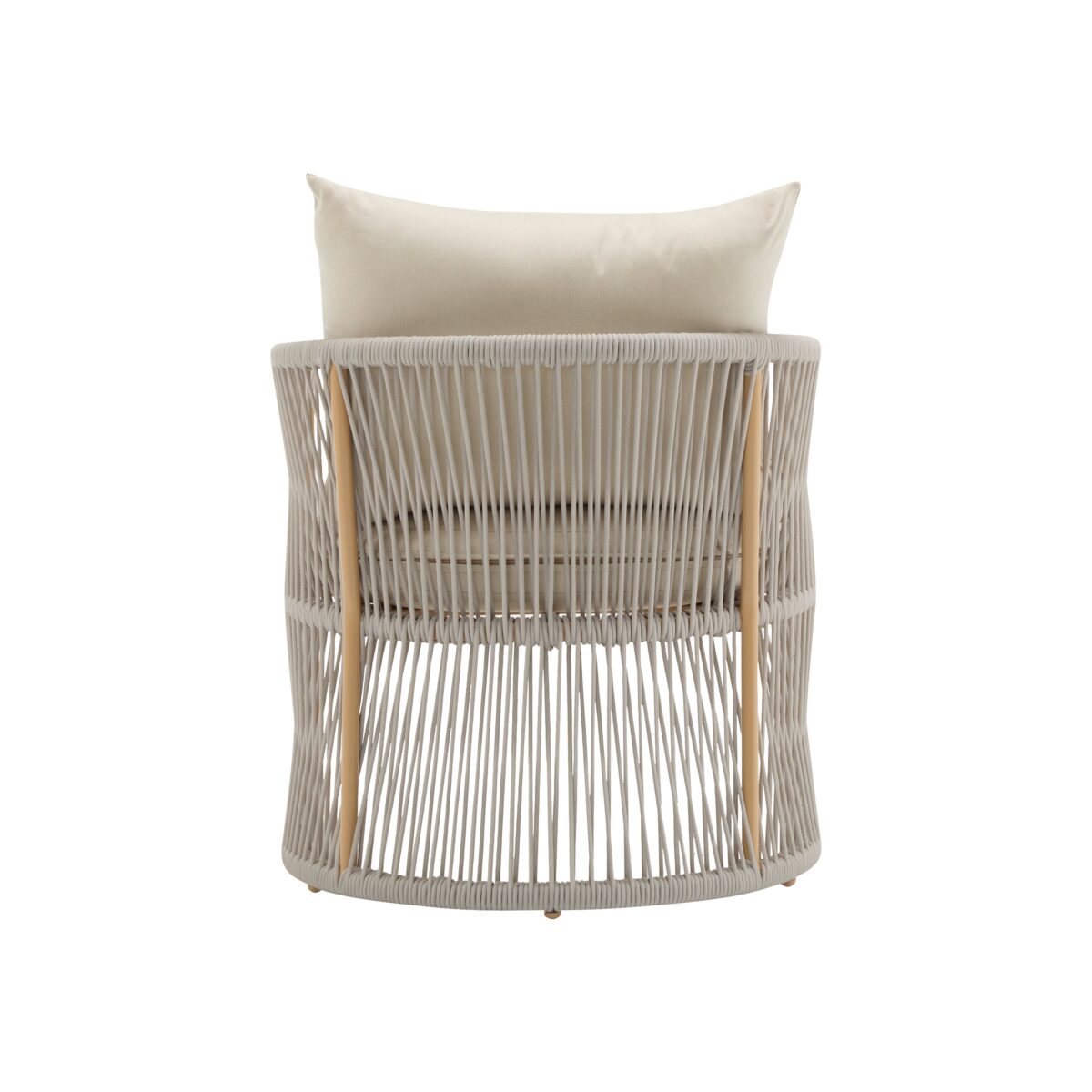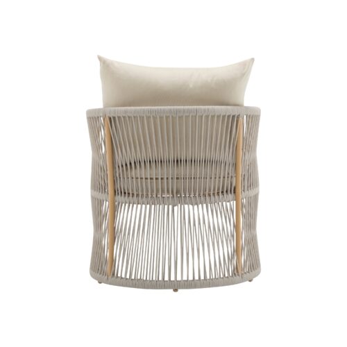 Elevate your outdoor or indoor space with this beautifully crafted lounge chair, blending modern aesthetics with functional design. Featuring a graceful curved frame and refined rope-weave pattern, it’s the perfect piece to enhance patios, gardens, or living rooms. Built with premium weatherproof materials, including a powder-coated aluminum frame and high-tensile synthetic ropes, this chair is both durable and easy to maintain. The generously padded cushions provide ultimate comfort for lounging, while its versatile design adapts to any setting, offering style and support wherever you relax.