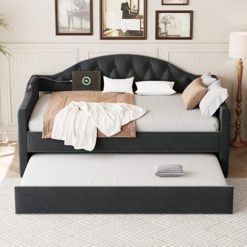Be the first to review “Velvet Tufted Twin Size Daybed with Trundle and USB Ports” Cancel reply
