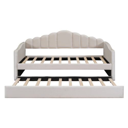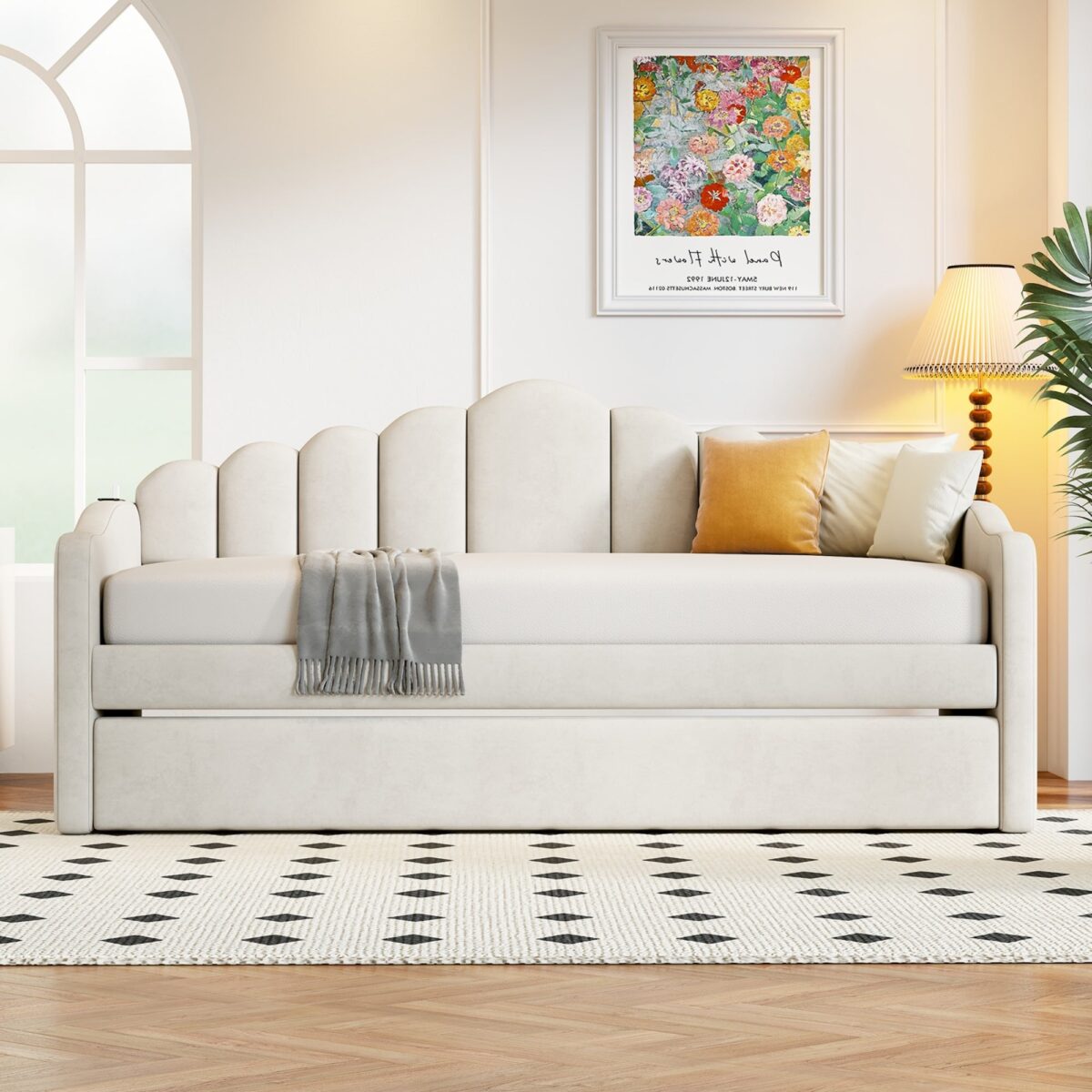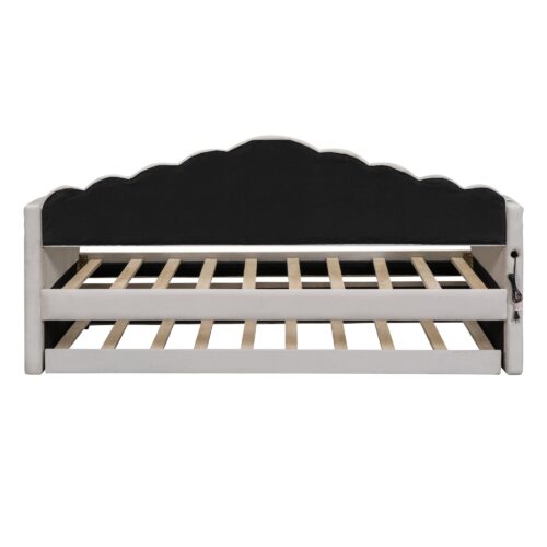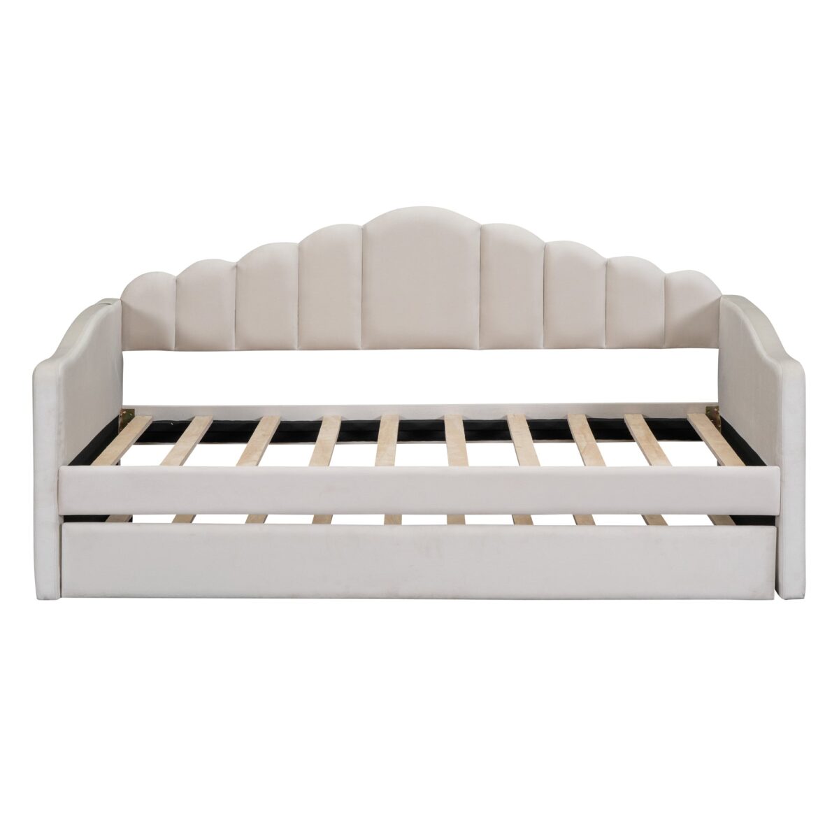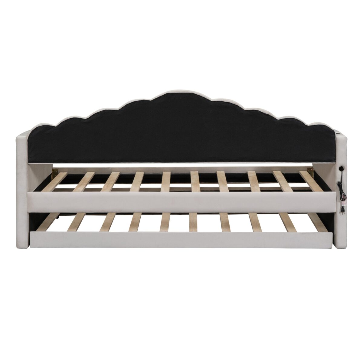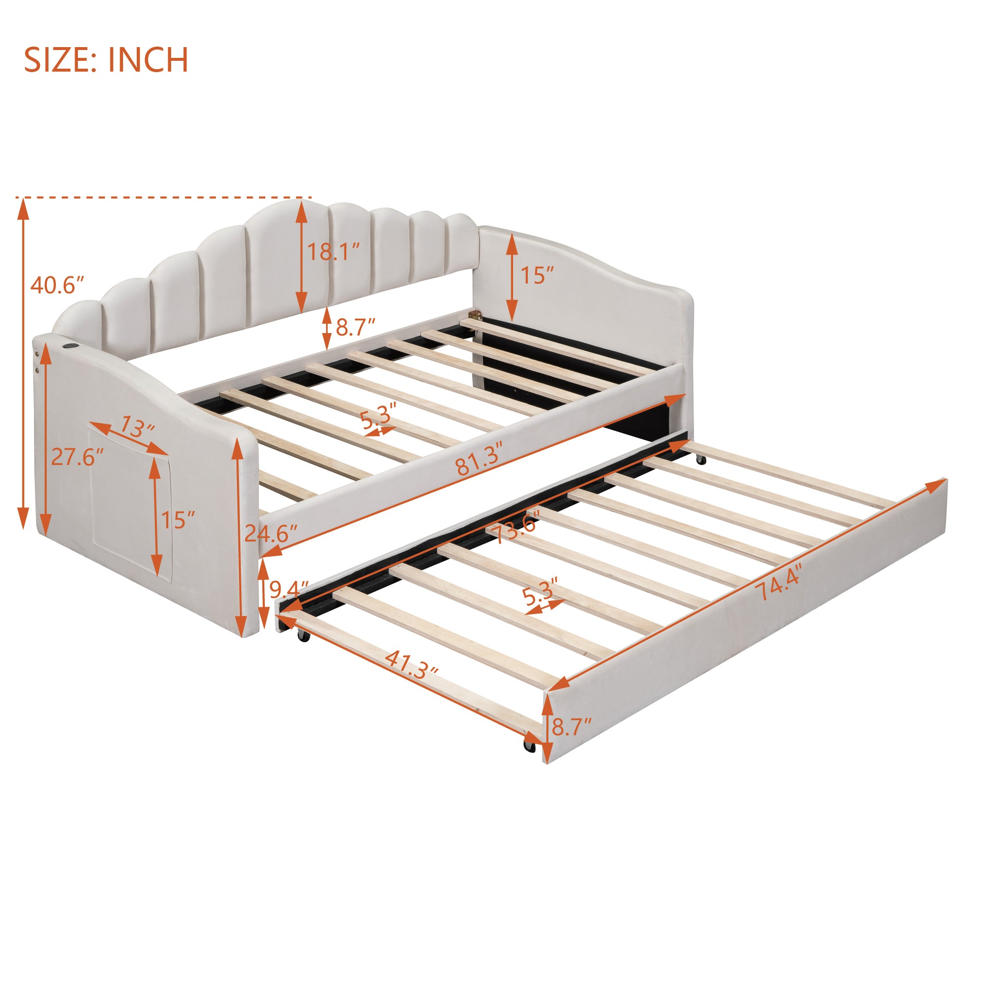 Walker Edison | Velvet Twin Size Sofa Bed with Trundle and USB Charging Ports