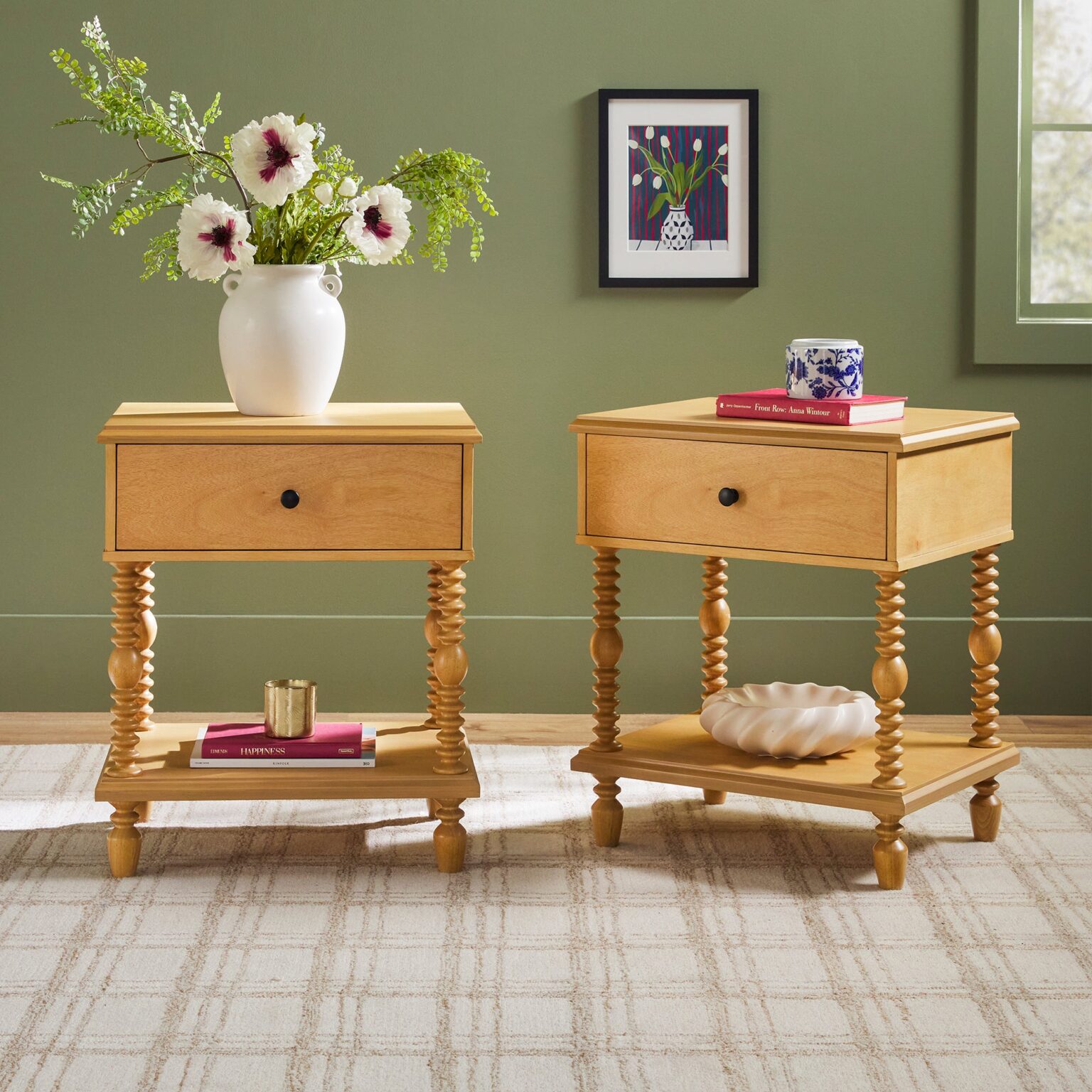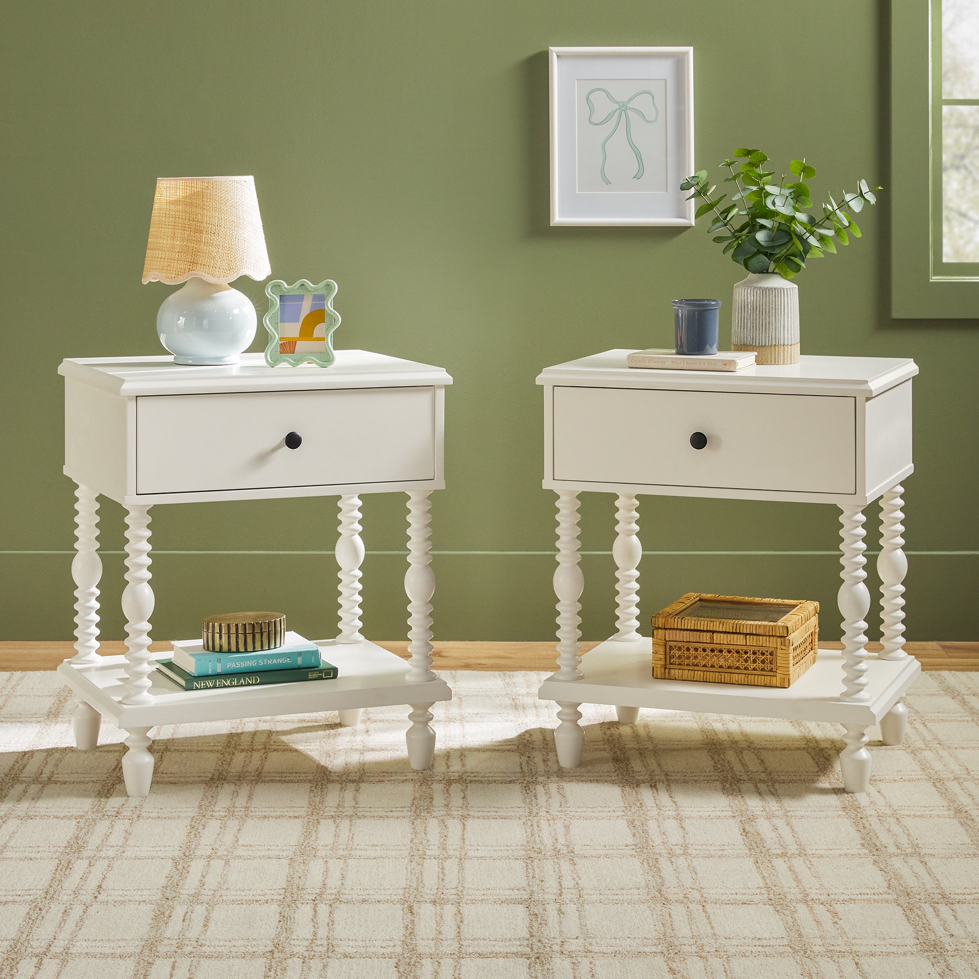 The Vivienne Nightstand takes the most frustrating part of furniture setup off your plate—its spacious drawer comes pre-assembled with Walker Edison EZ Assemblyâ„¢, so finishing your space is as easy as it looks. And in less than 30 minutes. From there, it’s all about the charm: wood-turned details, a rich solid wood build, and a heritage-inspired silhouette that feels plucked straight from your favorite antique store (without the antique price). It’s a standout piece where quality and craftsmanship shine—perfect for your nighttime routine or a little bedside styling moment. Use the open shelf to show off your latest read or favorite candles, while the roomy drawer keeps the rest out of sight and close at hand.