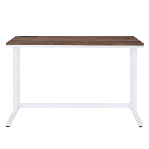 This writing desk features a knock-down design for easy assembly and convenient transportation, making it suitable for various room settings. Its rectangular shape provides a spacious work surface for writing, studying, or working on a laptop, while the built-in USB port and plug offer convenient access for charging electronic devices, and the open base design ensures ample legroom and space underneath for added comfort and versatility, accommodating ergonomic seating and additional storage options.